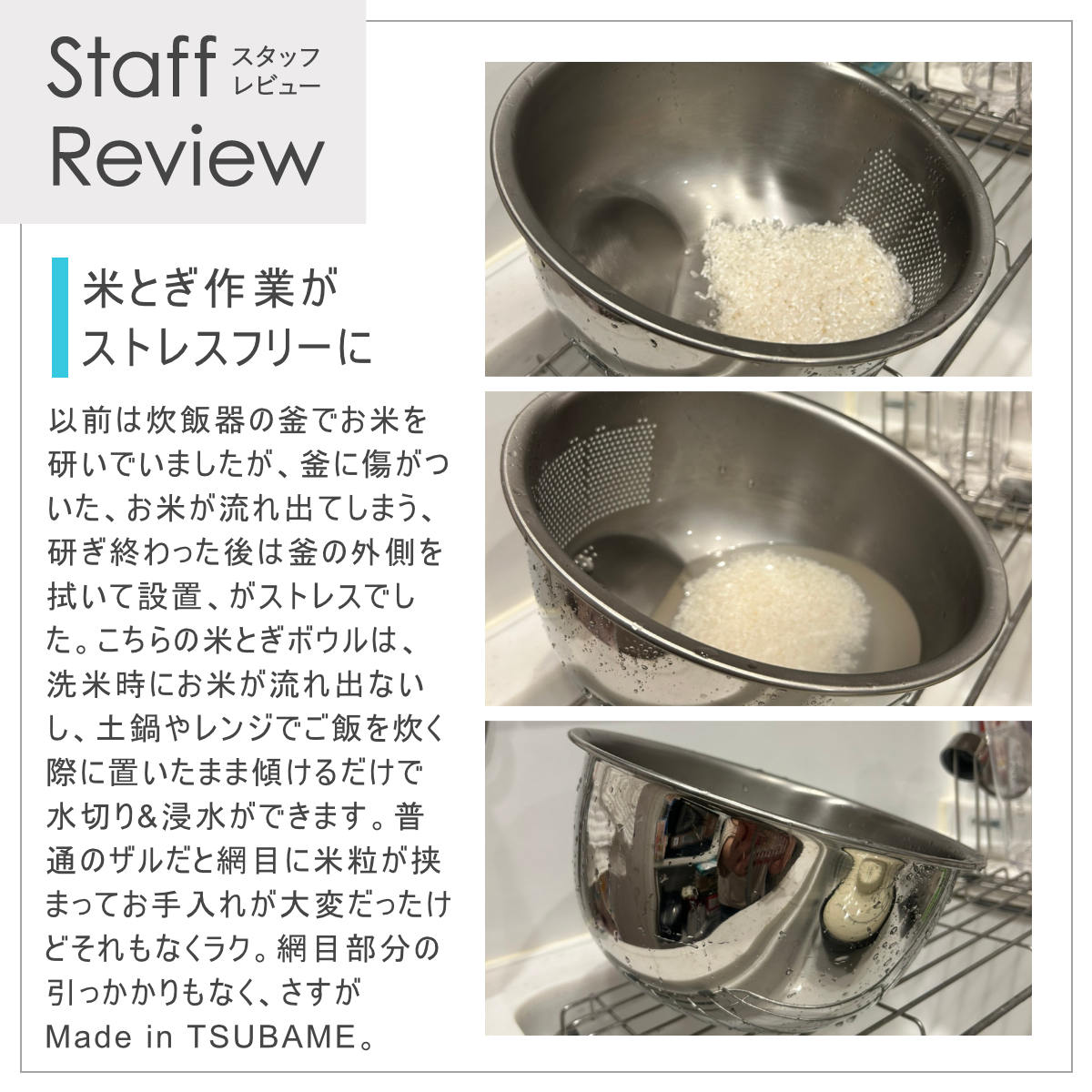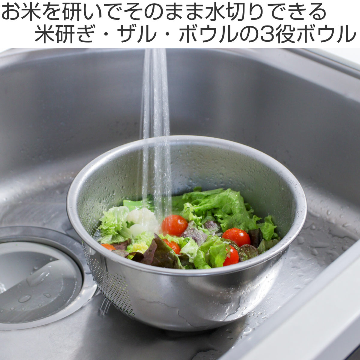 米研ぎボウル 21cm ステンレス製 3WAY米とぎボウル 食洗機対応 日本製 ( ボウル 米研ぎ 米とぎ 米研ぎ用ボウル 米研ぎボール 洗米ボウル 18-8ステンレス 水切り 米 下ごしらえ ボール 3WAY )