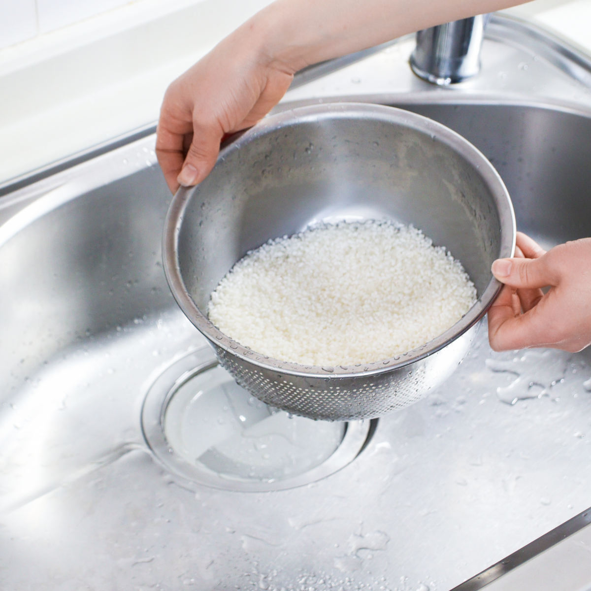 水切り穴はお米がこぼれない大きさで、1粒も落とすことなくお米を洗えます。炊飯器の釜や一般的なボウルで研ぐ場合と比べて、水切りがしやすくスピーディーです。2~4合のお米にちょうどいいサイズです。