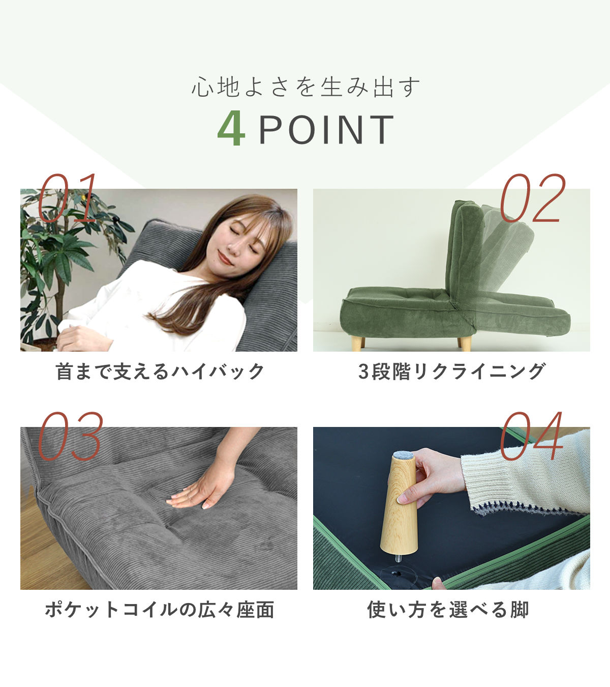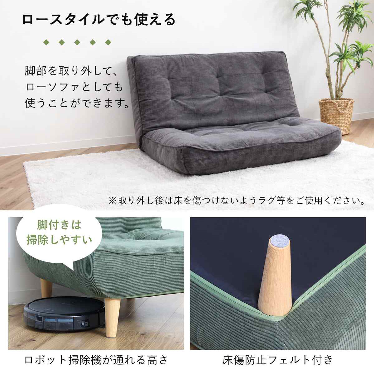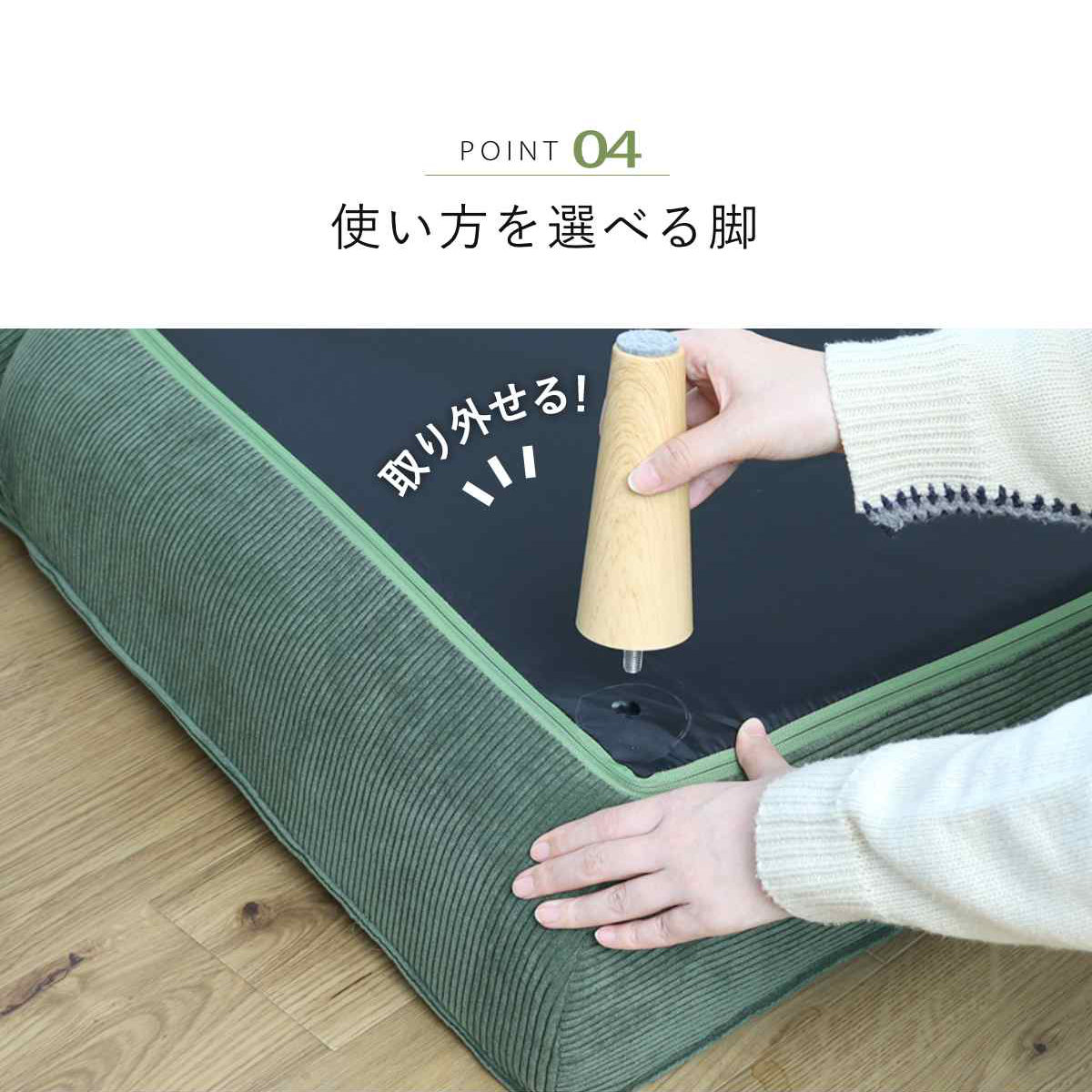 | 材質 | 構造材:スチールパイプ クッション材:ウレタン、ポケットコイルスプリング 生地:ポリエステル91%、ナイロン9% 脚:樹脂 |