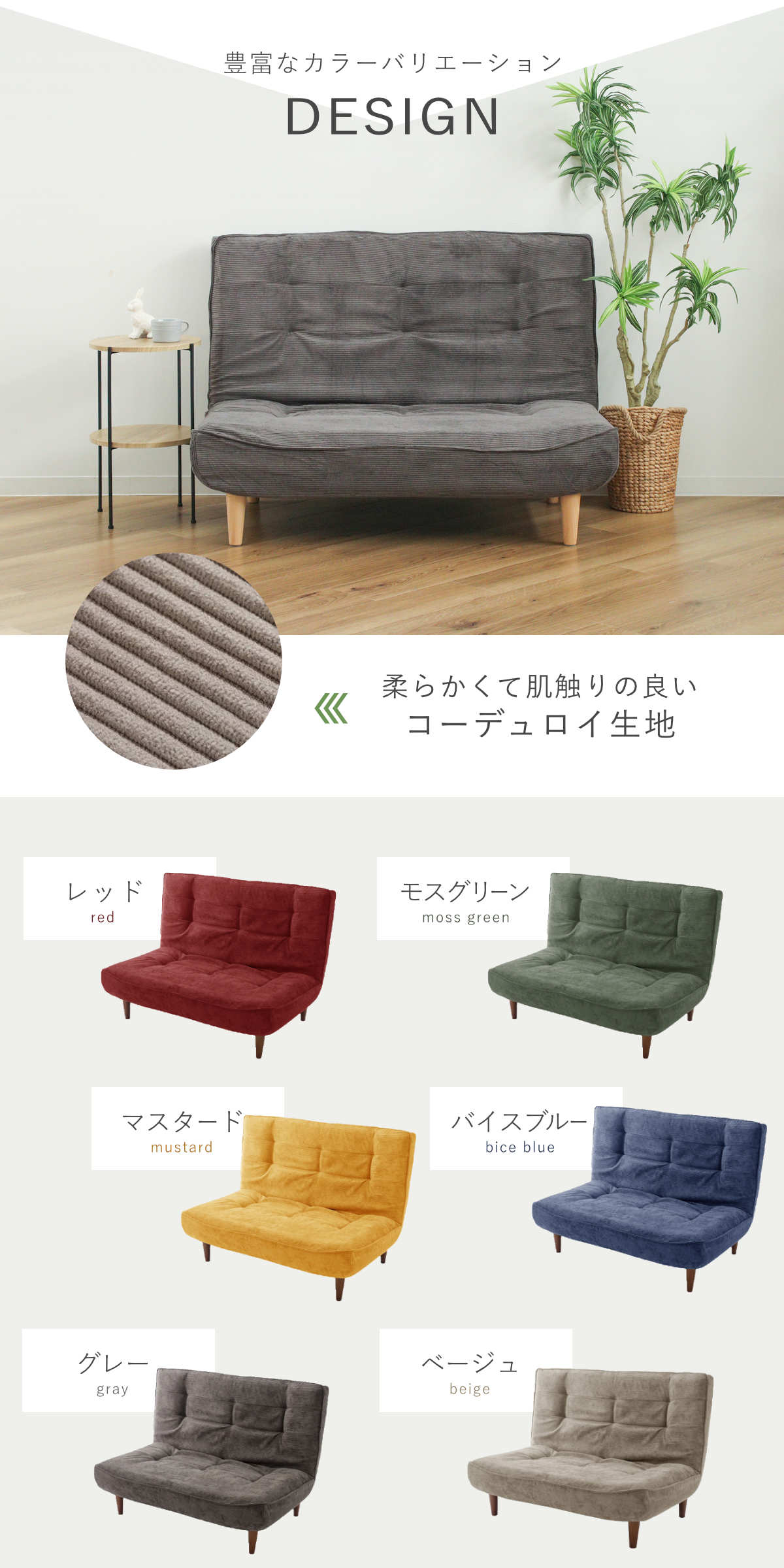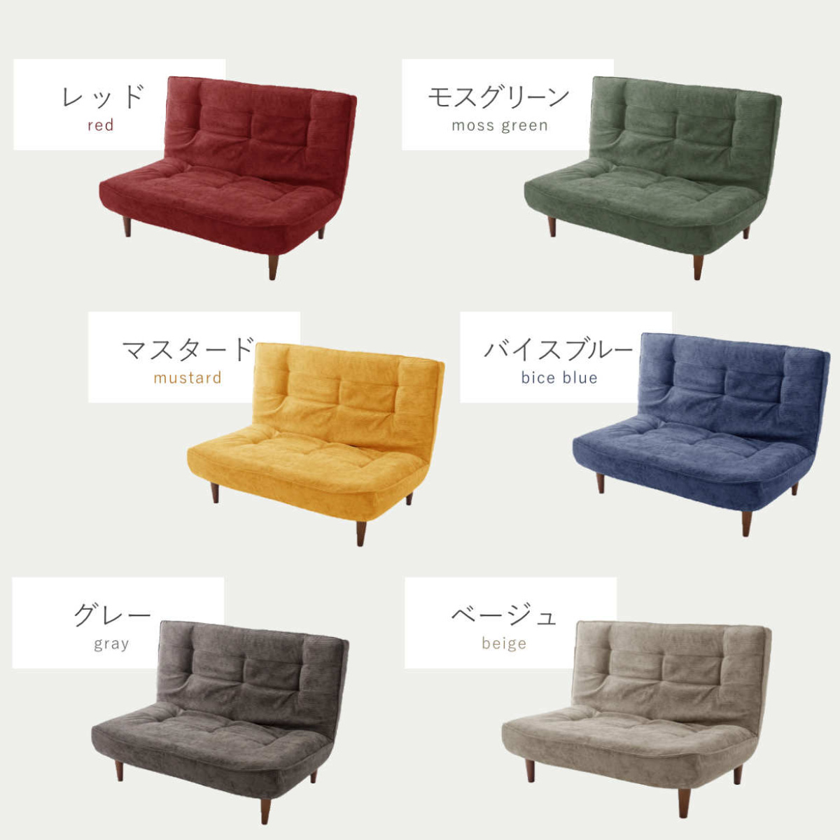 | 種類 | レッド、モスグリーン、マスタード、バイスブルー、グレー、ベージュ |