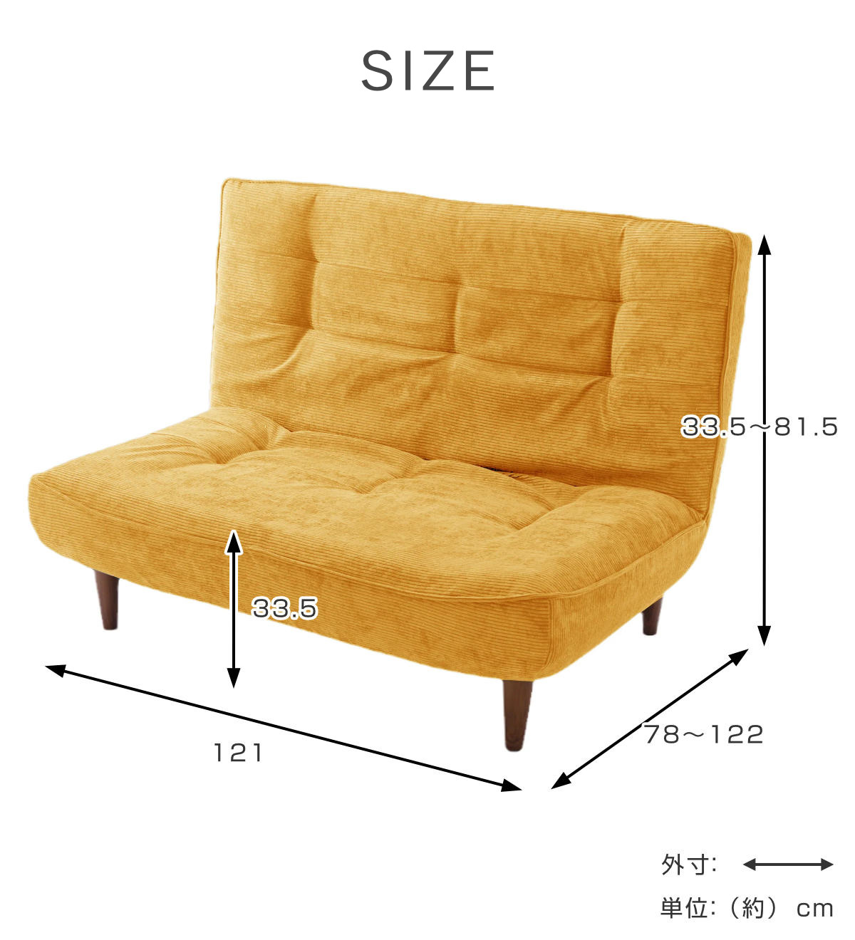 | サイズ | 約 幅121×奥行78~122×高さ33.5~81.5(cm) |
