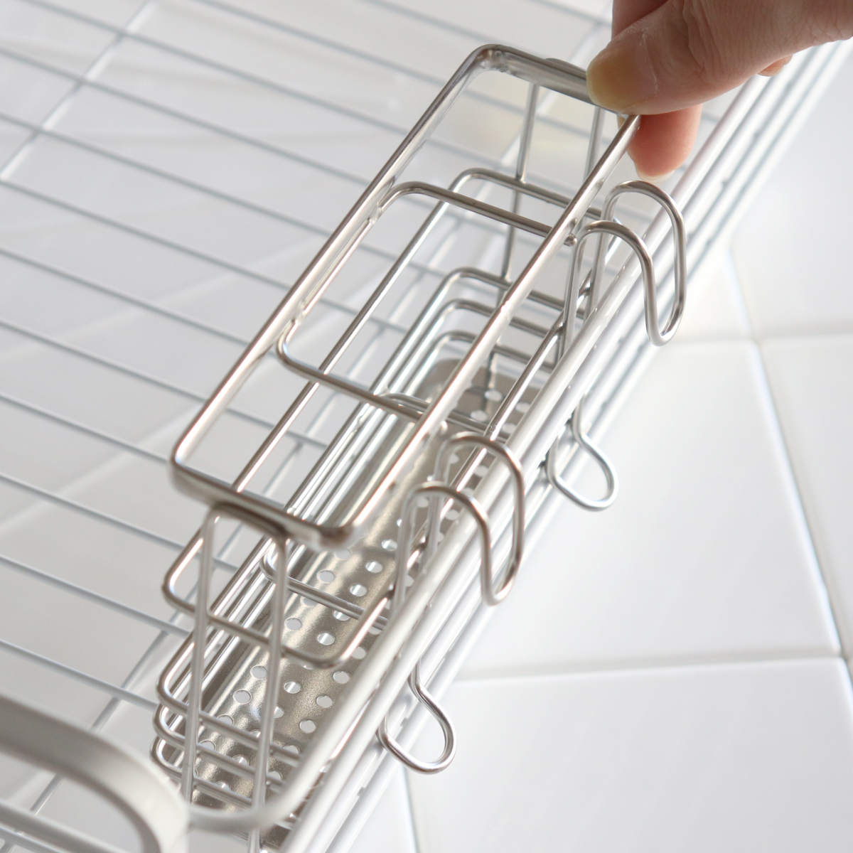 ステンレス製のワイヤータイプで、水切れが良く、通気性も高いので衛生的にお使いいただけます。