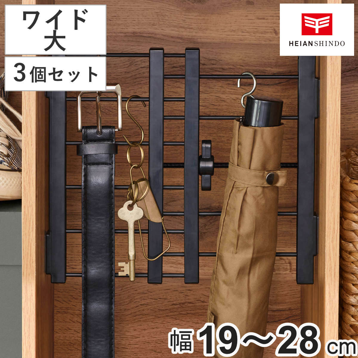 つっぱり棚 3個セット 突っ張りすき間棚 ワイド大 取付寸法19~28cm ブラック ( つっぱり 棚 収納 縦 横 取り付け 伸縮棚 隙間収納 追加棚 仕切り 収納棚 突っ張り棚 小物収納 つっぱり棒 簡単取り付け 小物置き 黒 ブックエンド )