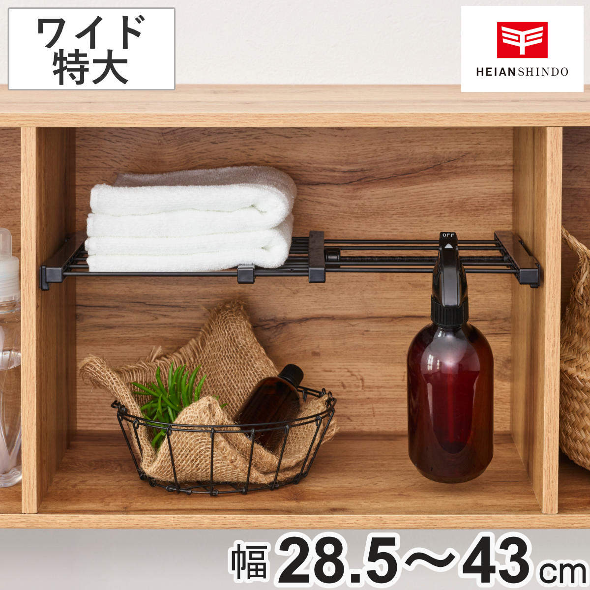 つっぱり棚 突っ張りすき間棚 ワイド特大 取付寸法28.5~43cm ブラック ( つっぱり 棚 収納 縦 横 スリム 取り付け 伸縮棚 隙間収納 追加棚 仕切り 収納棚 突っ張り棚 小物収納 つっぱり棒 簡単取り付け 小物置き 黒 ブックエンド )