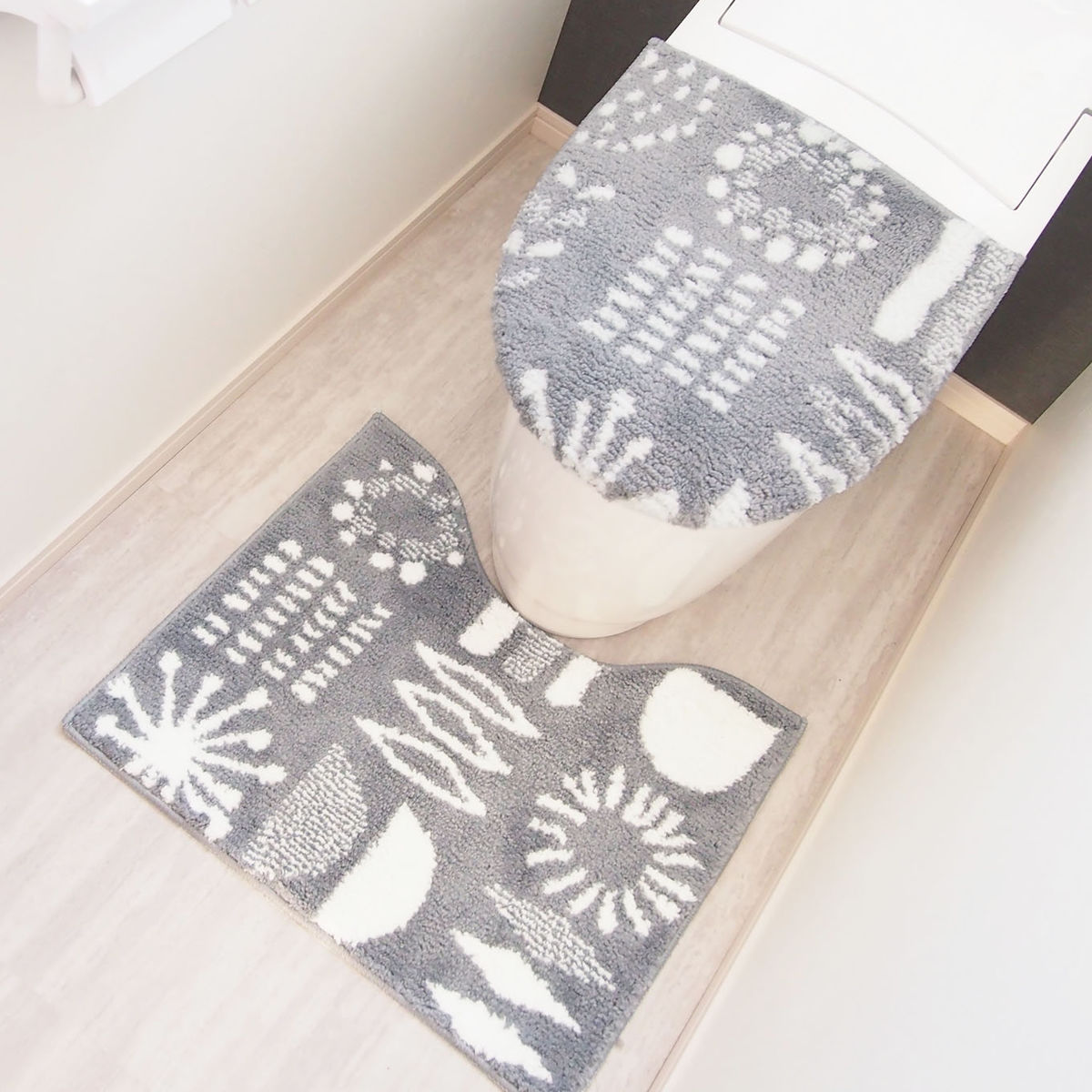 北欧風デザインがおしゃれな蓋カバーとトイレマットの2点セット