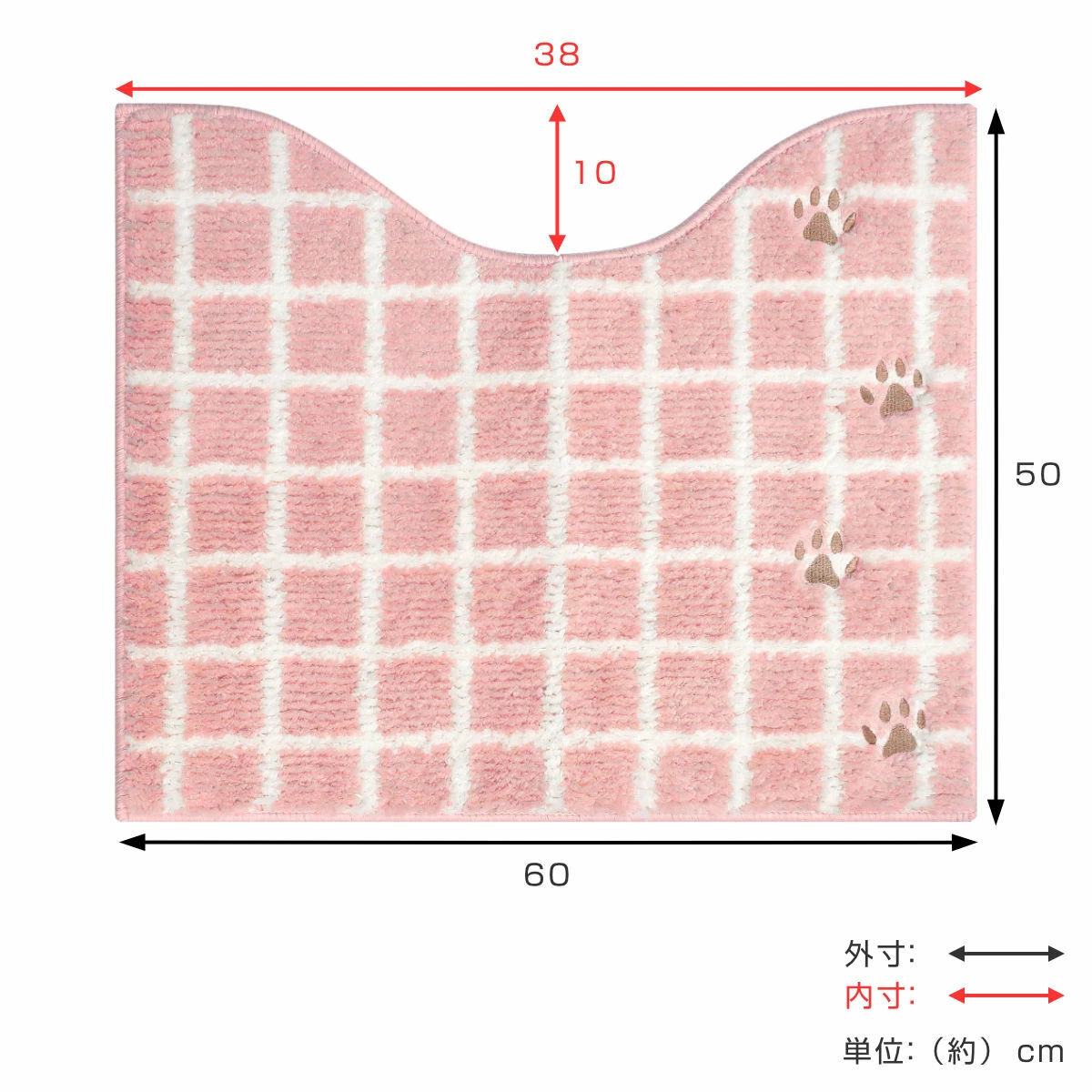 | サイズ | 洗浄暖房型・普通型(O型・U型)兼用 トイレマット:約 縦50×横60cm 蓋カバー:約 縦48×横40cm(折り返し部分を含む) |