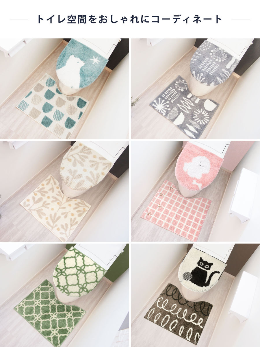 あたたかみのある北欧デザインのトイレマット・兼用蓋カバー2点セットです。やさしく空間に溶け込み、心地よいトイレ空間を演出してくれます。蓋カバーは、O型・U型・洗浄暖房型のどのタイプにも対応しています。