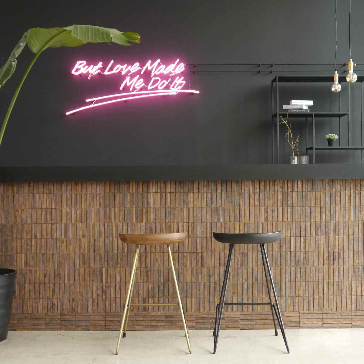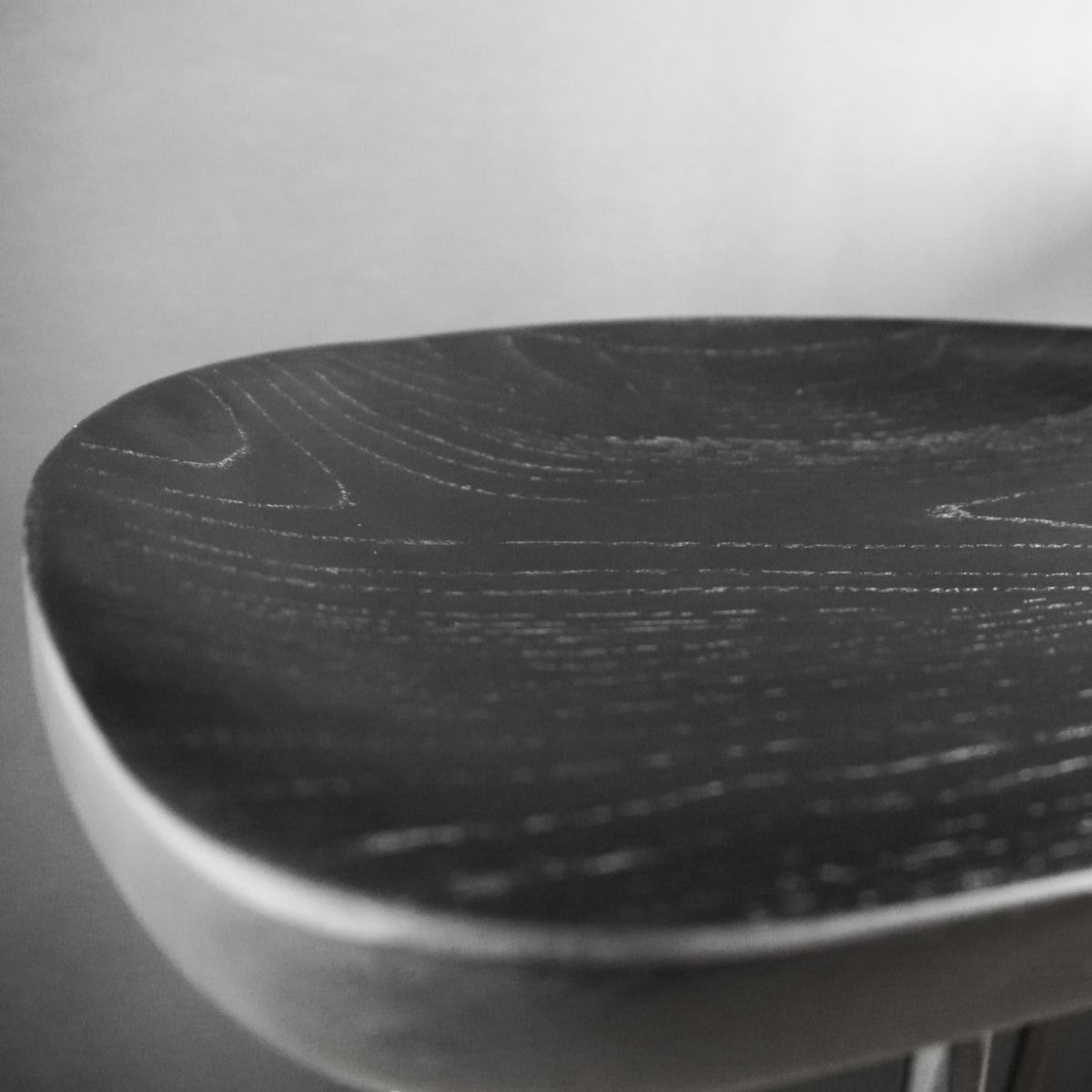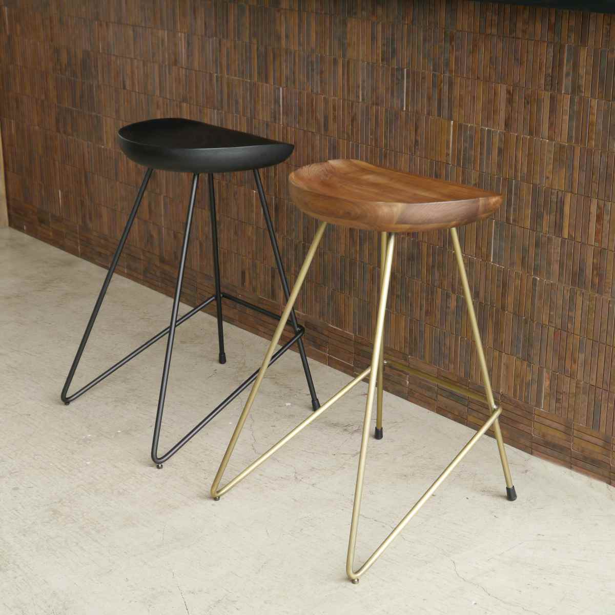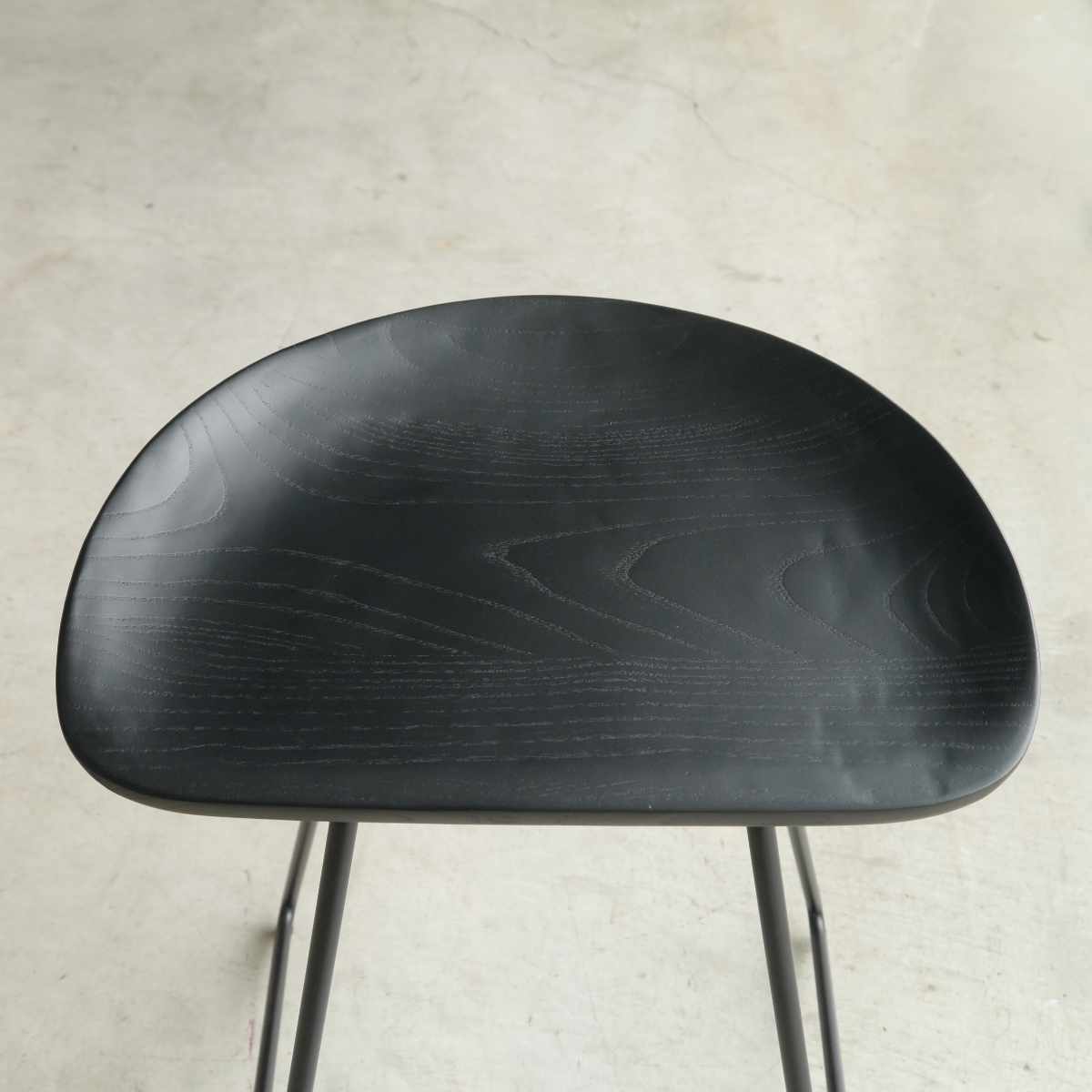 無垢材から贅沢に削り出した座面の量感と、スチール脚の繊細なバランスが美しいハイチェアです。座面と脚をシックなブラックで統一しており、キッチンやダイニングをバーのようなおしゃれな空間にしてくれます。