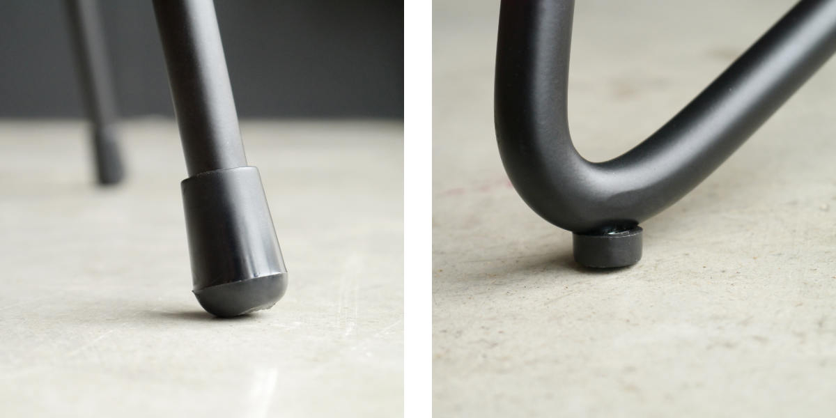 脚の先端にはキャップが付いているので、滑りにくく床を傷つけにくいです。
