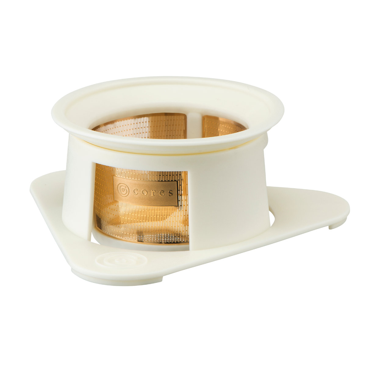 Cores コーヒーフィルター 1杯用 シングルカップ ゴールドフィルター 純金メッキ ( コレス コーヒードリップ コーヒードリッパー ドリップ ホルダー付き 1杯分 ステンレスフィルター ペーパーレス 純金コーティング ハンドドリップ ) 【ホワイト】