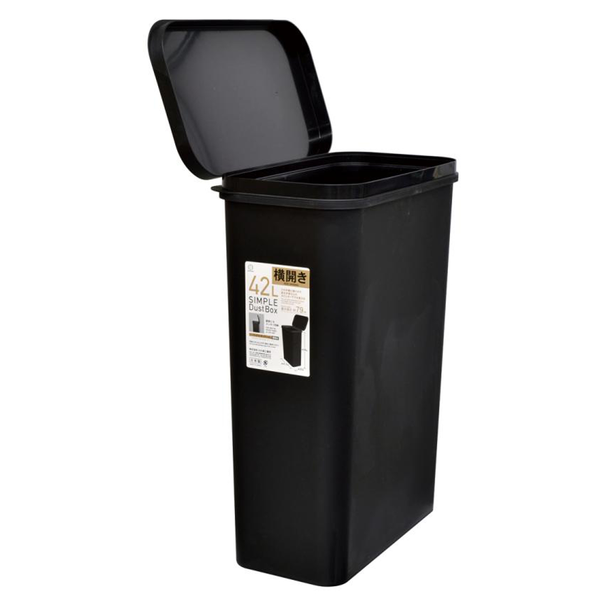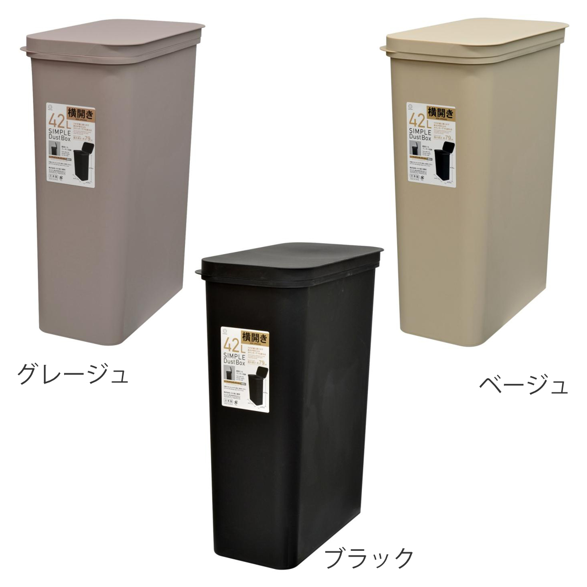 ゴミ箱 42L 横開き SIMPLE DUST BOX ( ごみ箱 42リットル ふた付き スリム キッチン 分別 シンプル おしゃれ 大容量 袋止め付き くすみカラー グレージュ ベージュ ブラック ) 【ブラック】