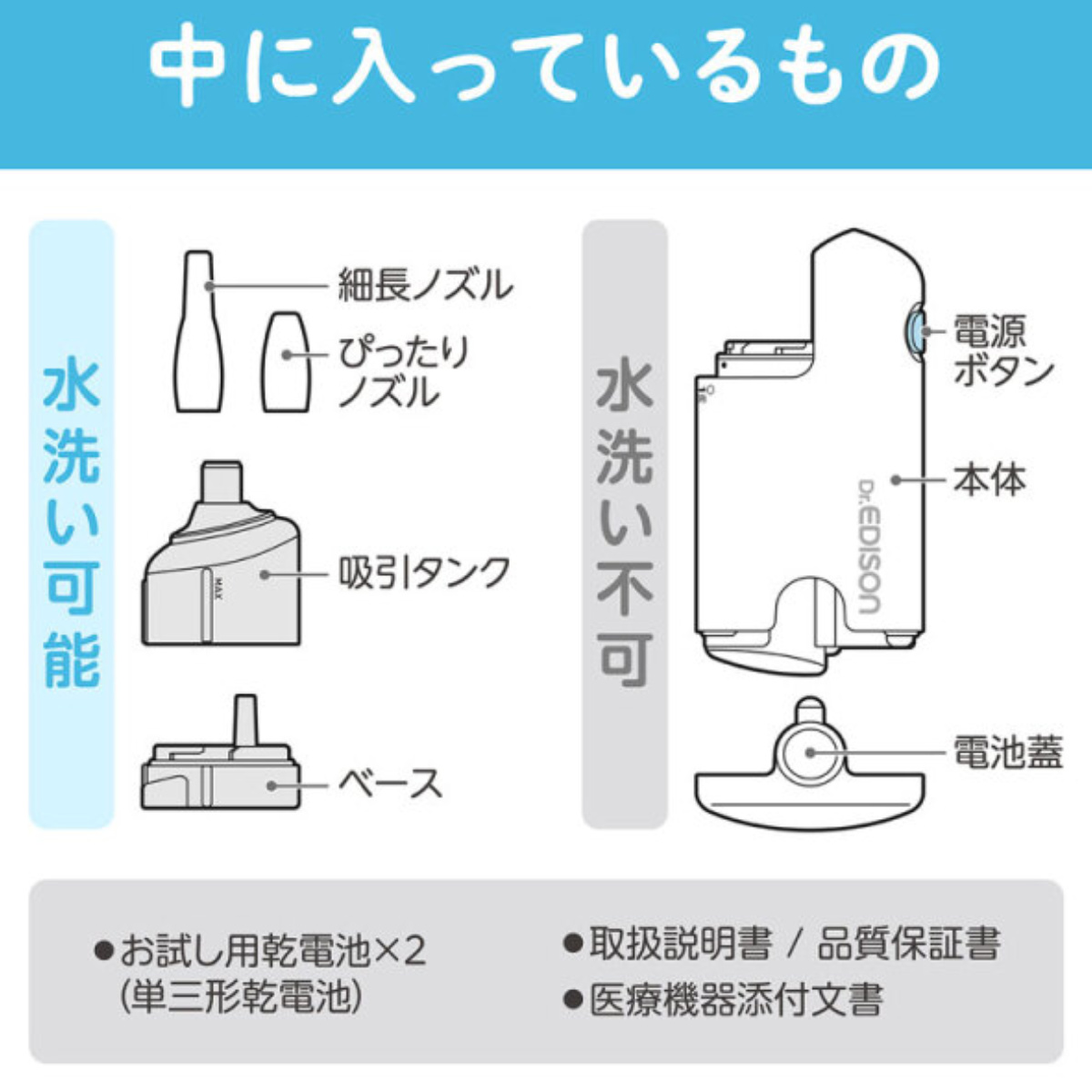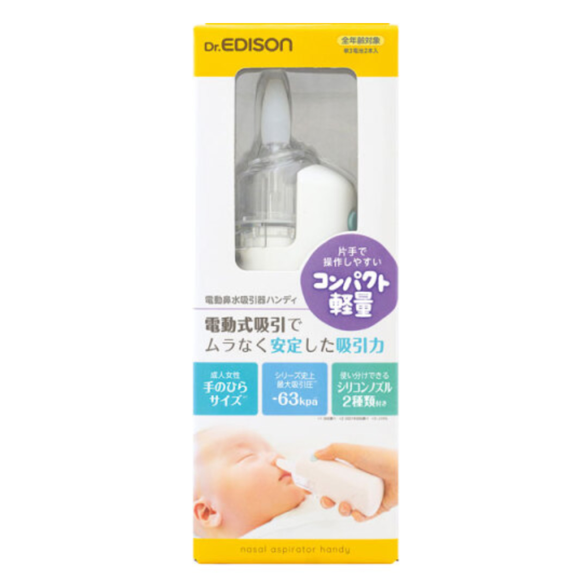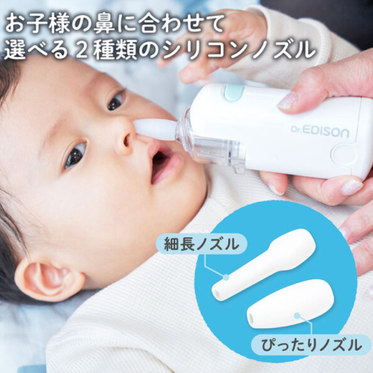 鼻水吸引機 電動 ハンディ エジソンママ 赤ちゃん コンパクト ( 水洗いOK 電動鼻水吸引機器 電池式 軽量 静音設計 鼻詰まり 鼻水吸い器 鼻水取り器 管理医療機器認証商品 ベビー 乳児 )