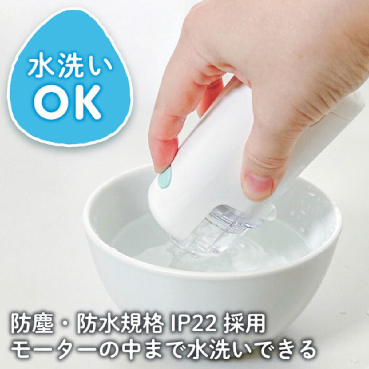 本体は、モーター内のみ水洗いが可能です。本体のお手入れ方法に従って、洗浄してください。洗浄後はしっかりと乾かして、本体にパーツをセットした状態で保管してください。