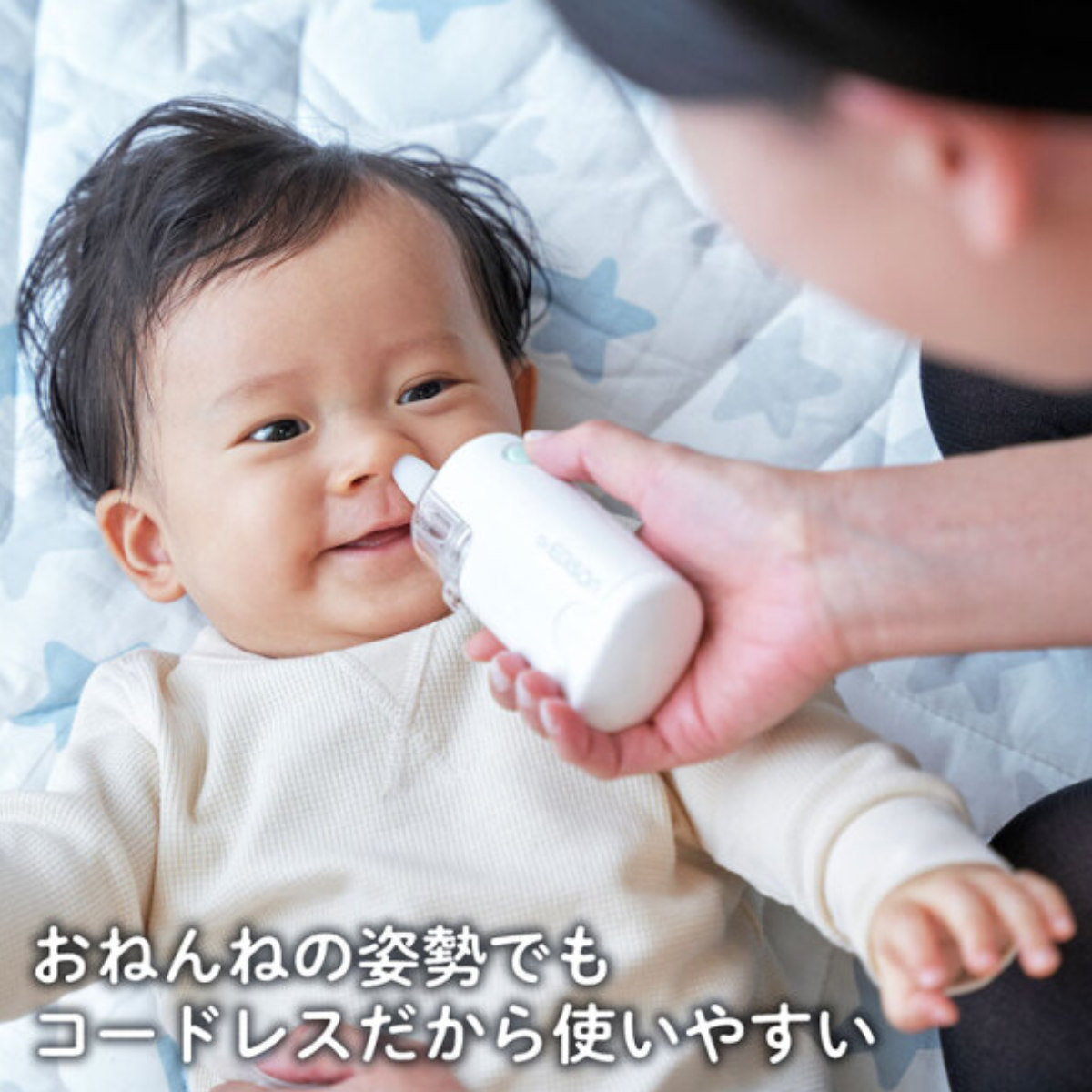 お子様の鼻水は場所を選ばず出てきます。電池で動くコードレスのハンディタイプの鼻水吸引器なら、寝室でも、リビングでも、お出かけ先でもサッと片手で使えます。コンパクトな鼻水吸引器で、お子様の鼻ケアをもっと手軽に簡単に行いましょう。