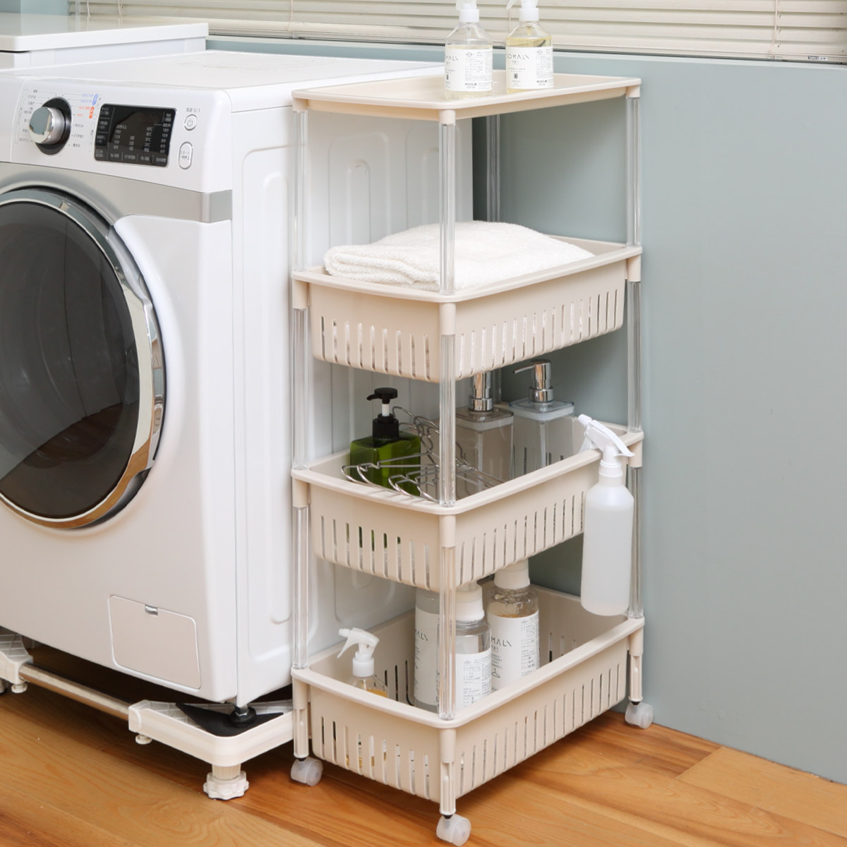 洗剤やシャンプーなどのストックやタオルの収納に