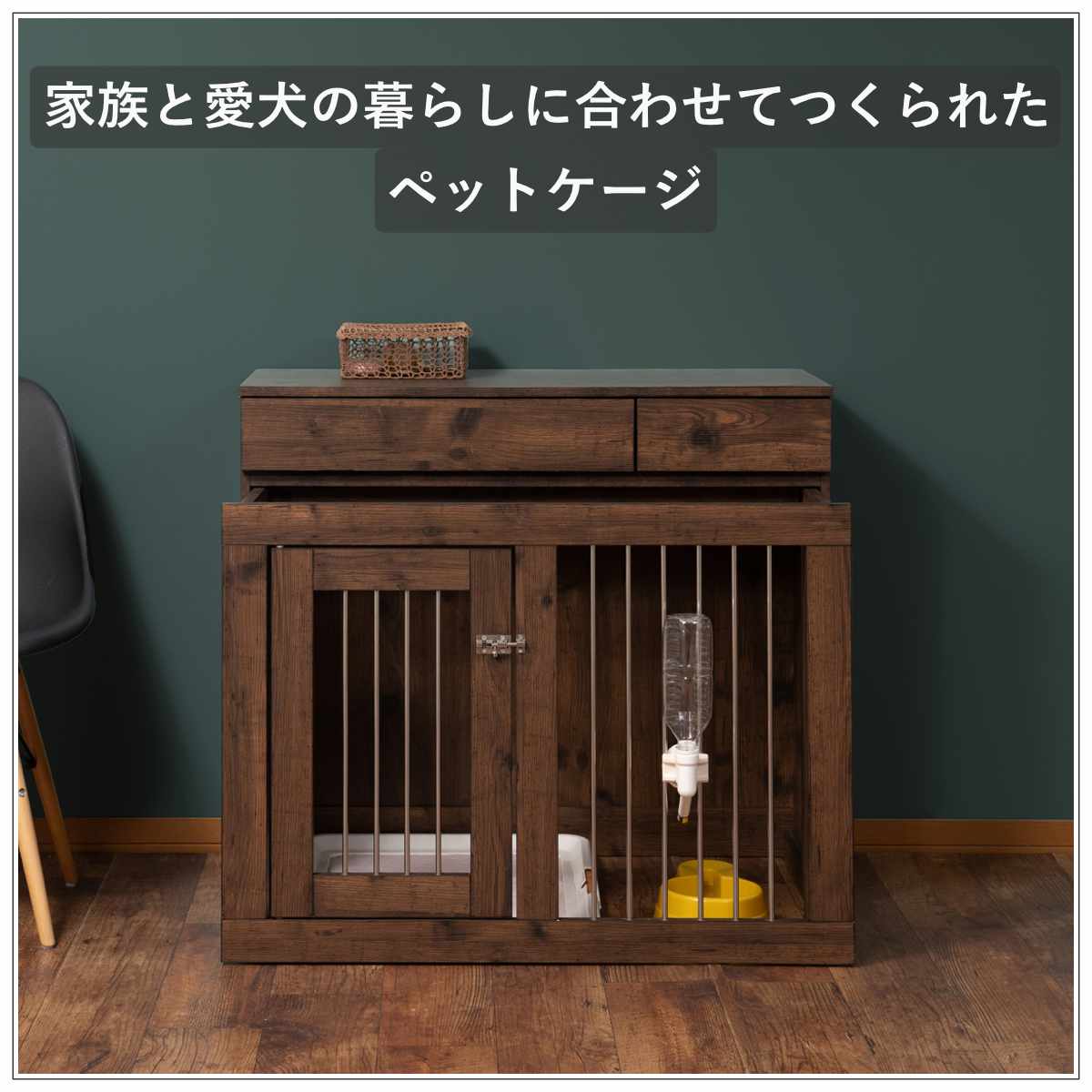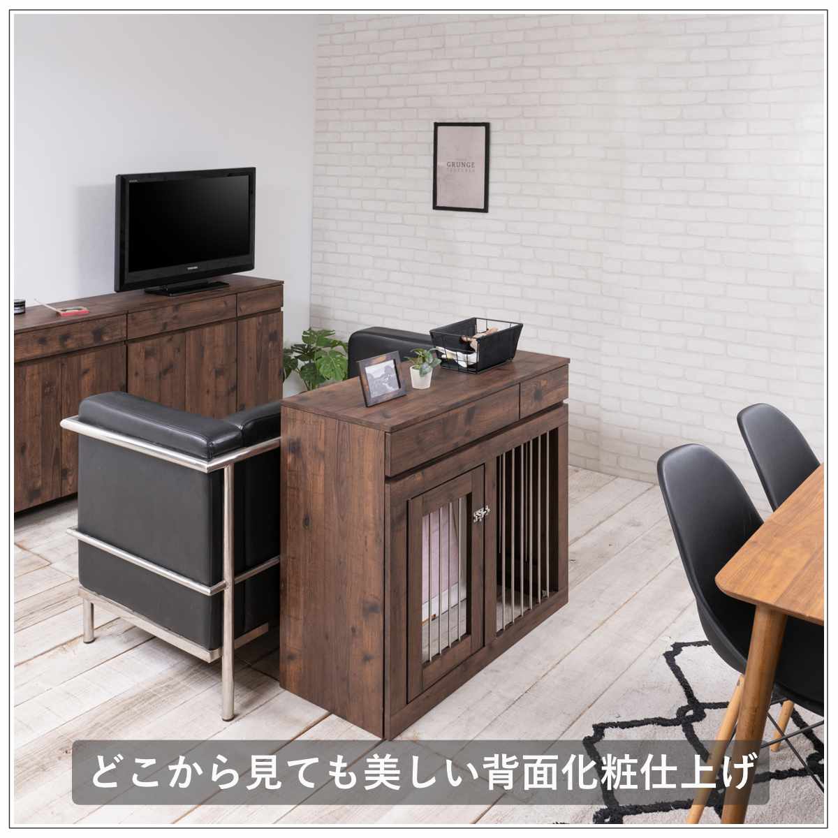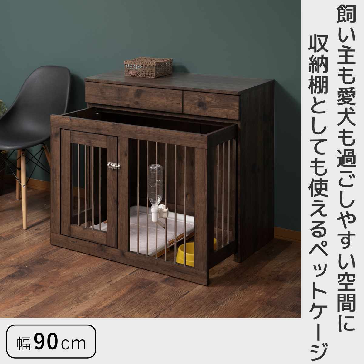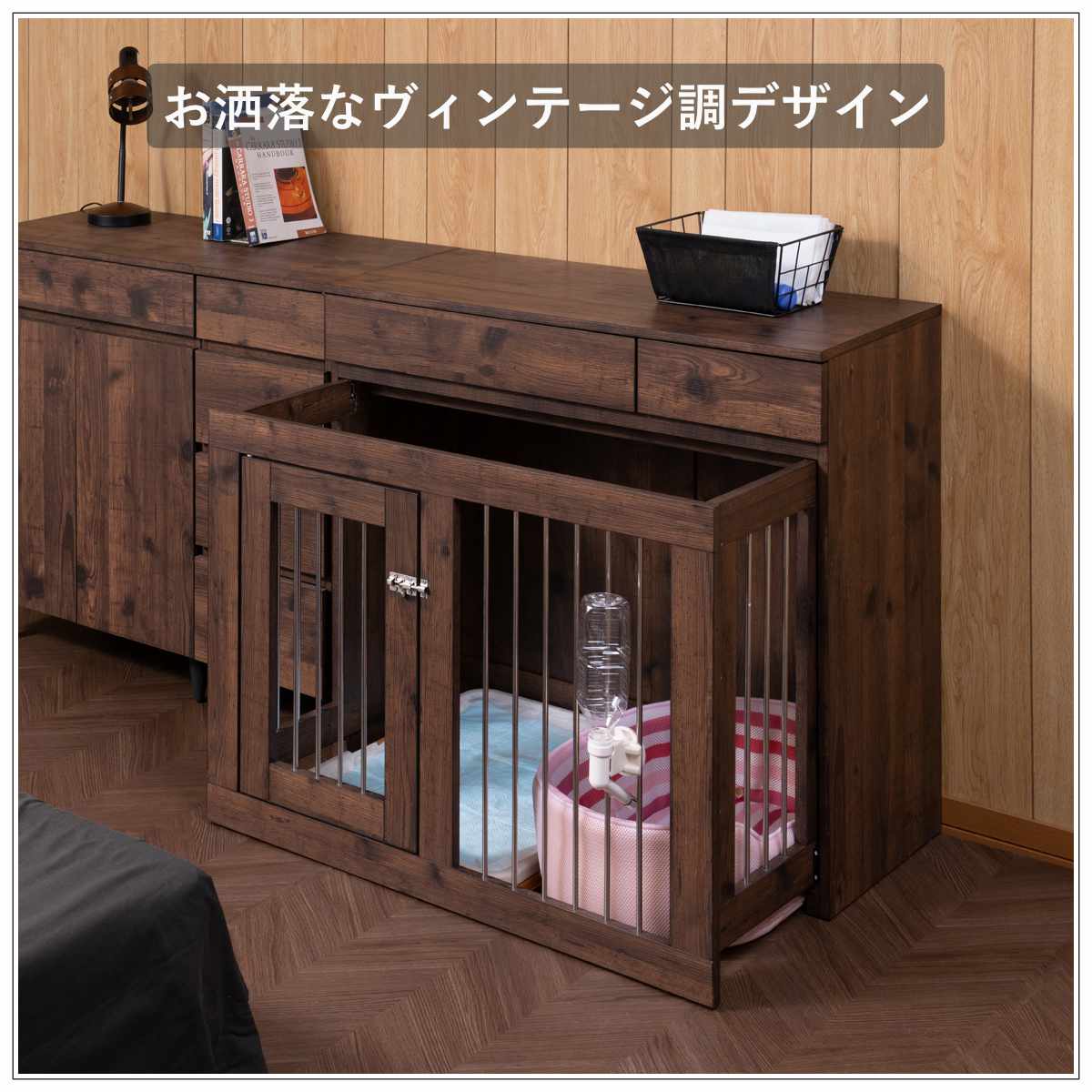 ペットケージ 幅90cm キャビネット ヴィンテージ調 Arizona ( アリゾナ ペット家具 ケージ 家具 収納 引き出し 収納ラック 鍵付 ペット用品 ペットベッド 背面化粧 拡張 )