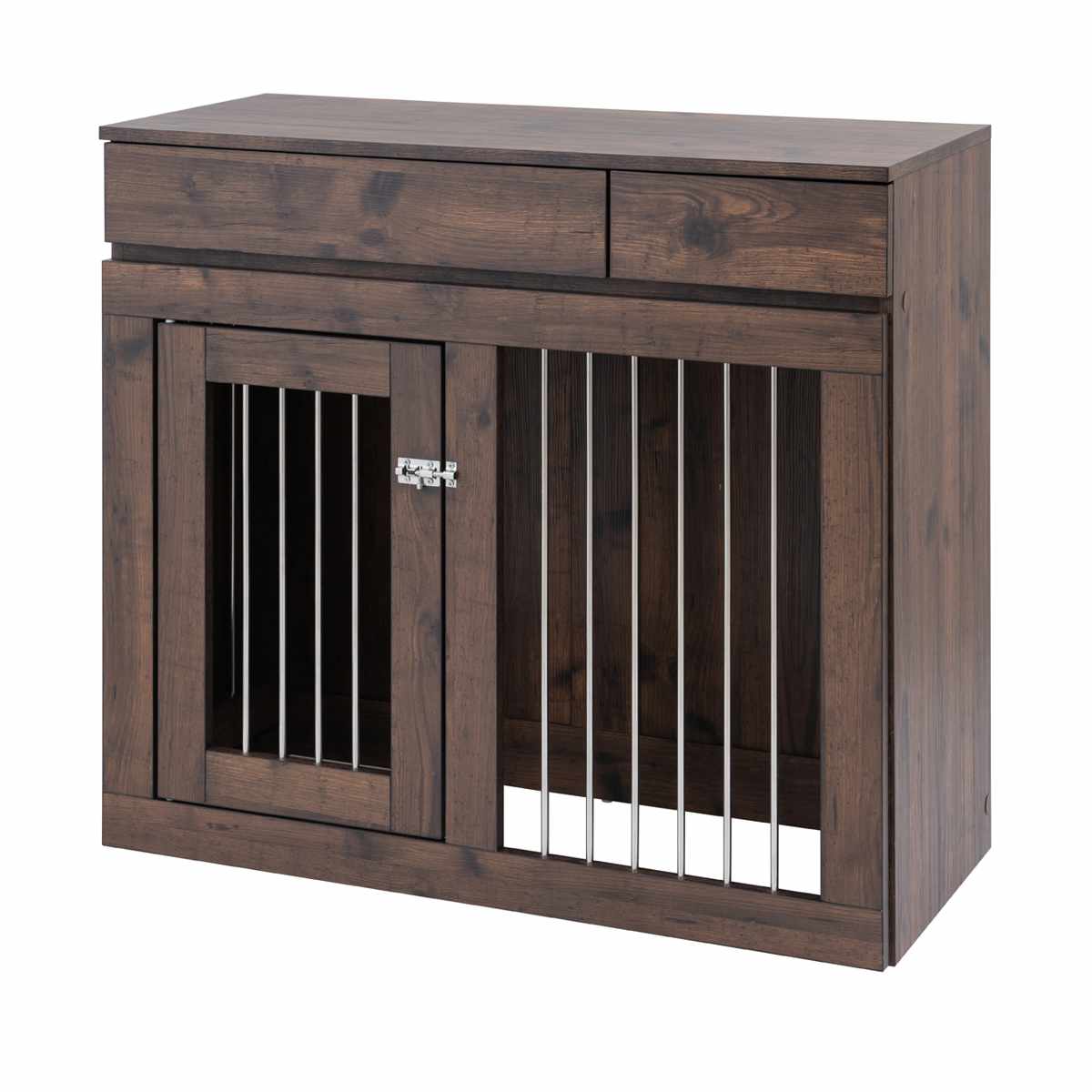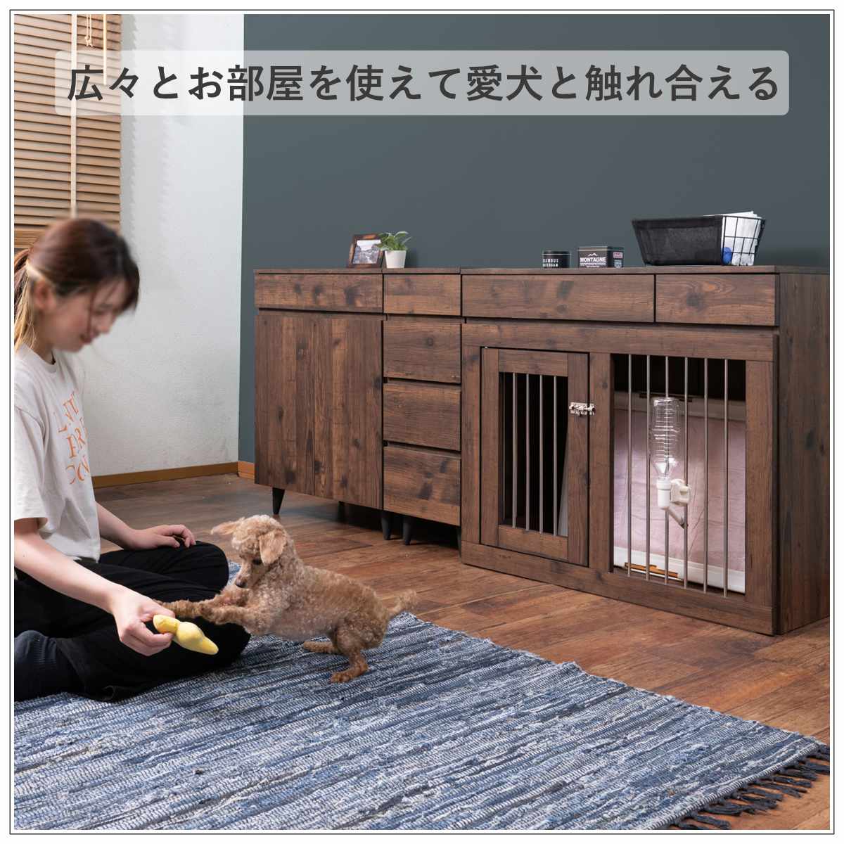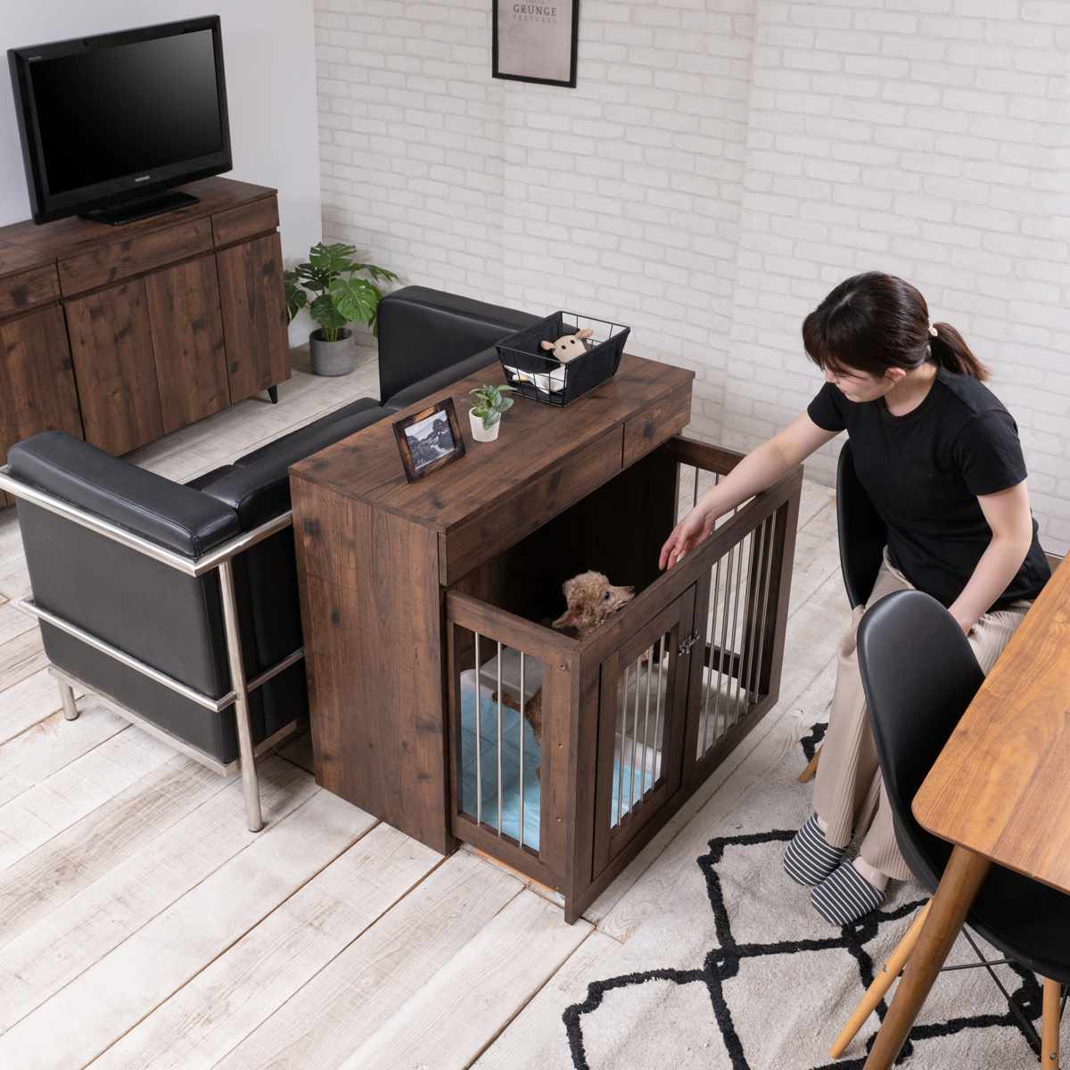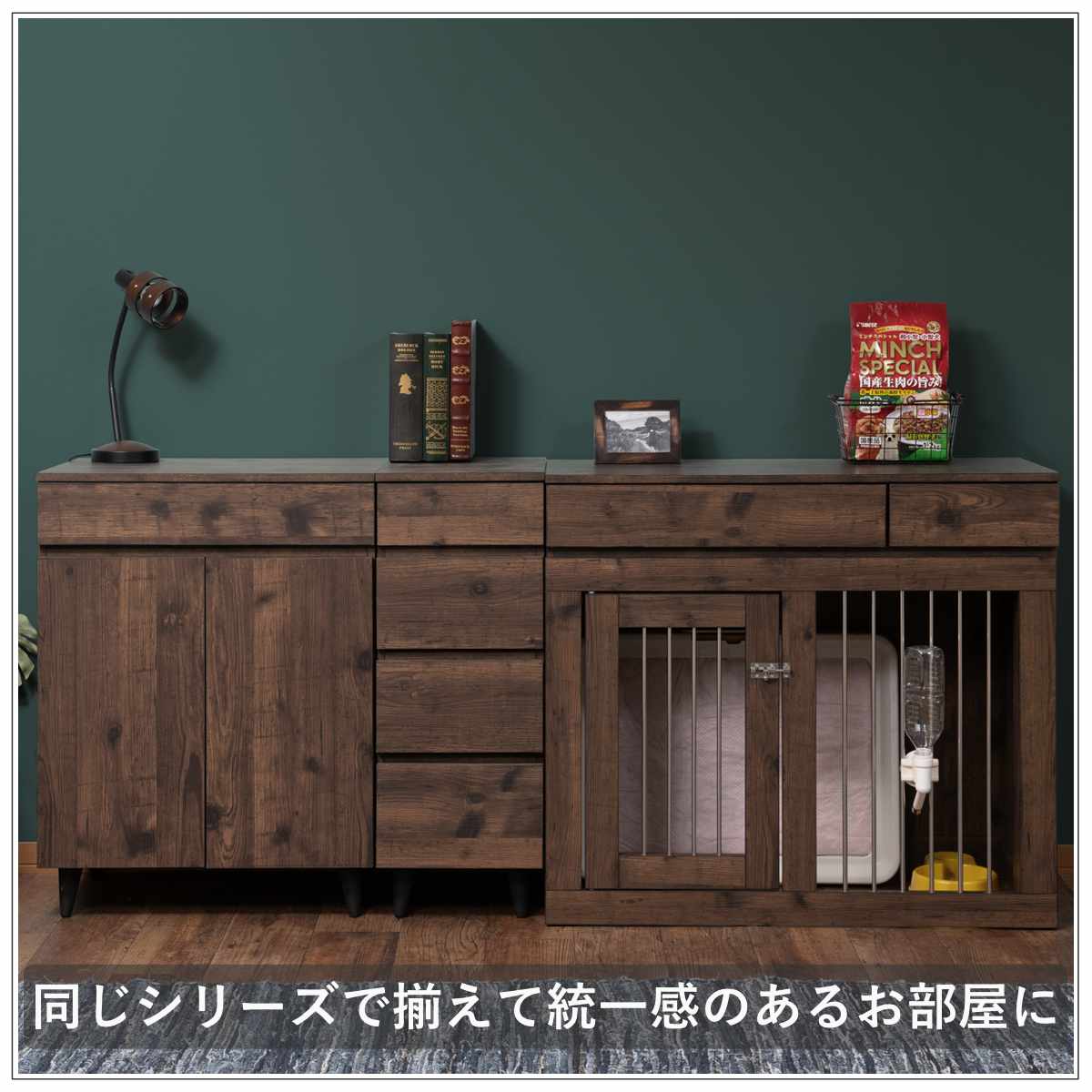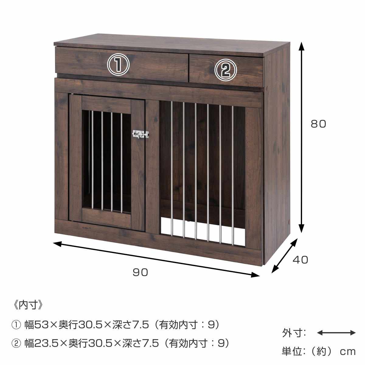 ペットケージ 幅90cm キャビネット ヴィンテージ調 Arizona ( アリゾナ ペット家具 ケージ 家具 収納 引き出し 収納ラック 鍵付 ペット用品 ペットベッド 背面化粧 拡張 )