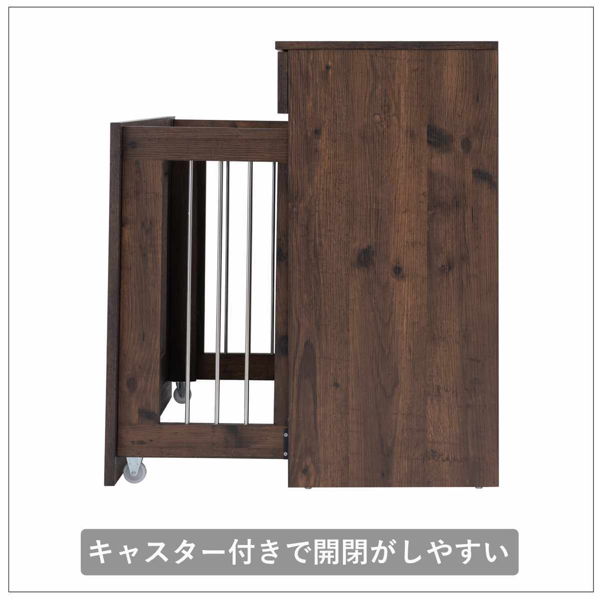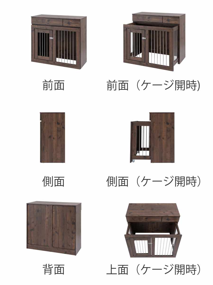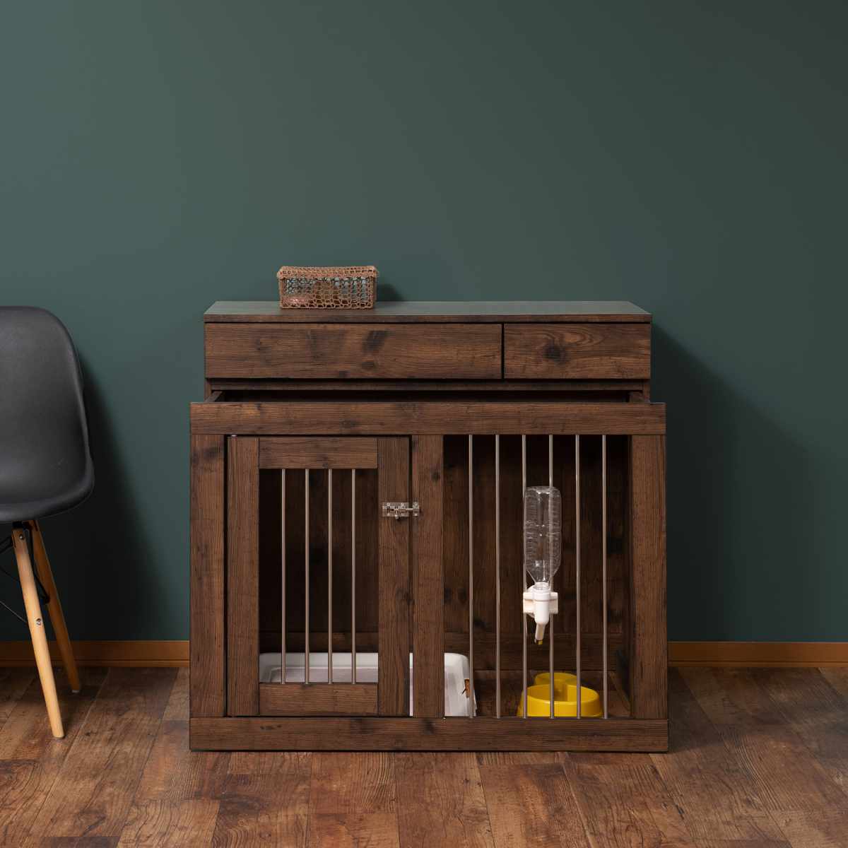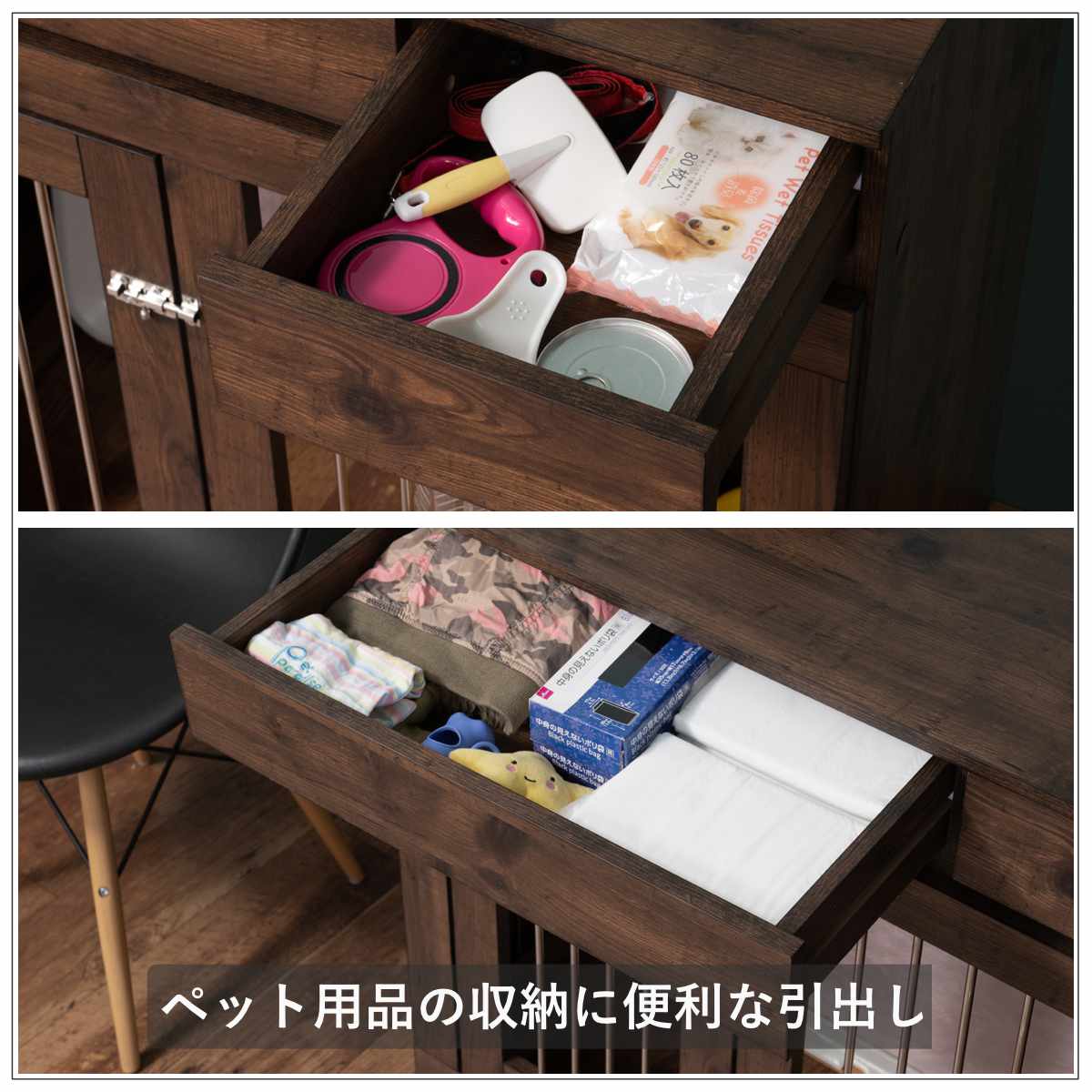 ペットケージ 幅90cm キャビネット ヴィンテージ調 Arizona ( アリゾナ ペット家具 ケージ 家具 収納 引き出し 収納ラック 鍵付 ペット用品 ペットベッド 背面化粧 拡張 )