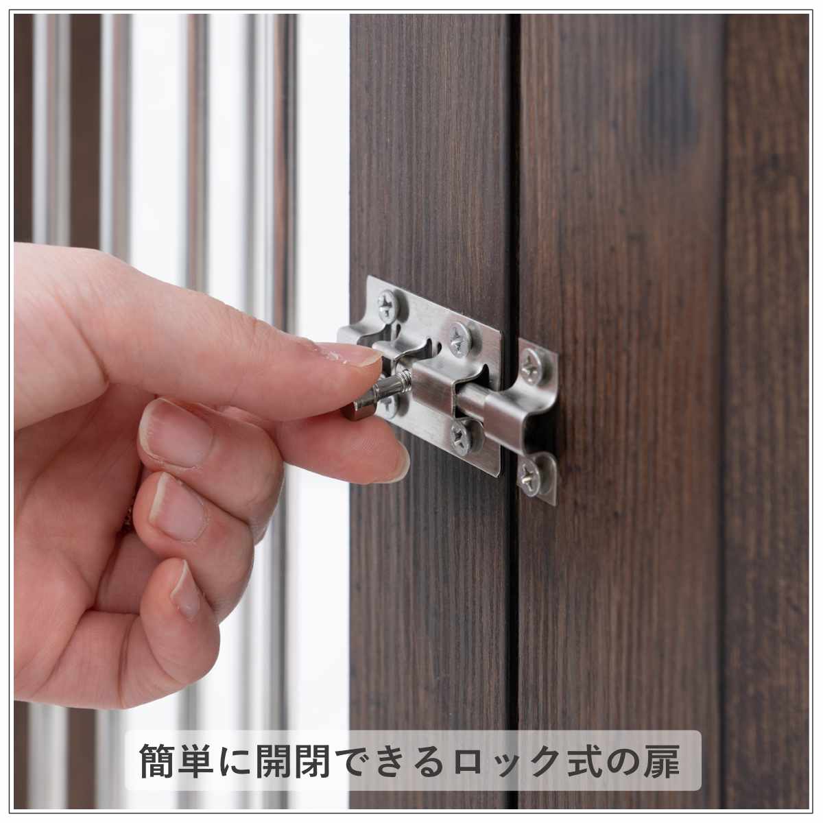 扉にはワンタッチロックを採用しています。飼い主さんは簡単に開けられますが、ワンちゃんには開けられない安心仕様です。