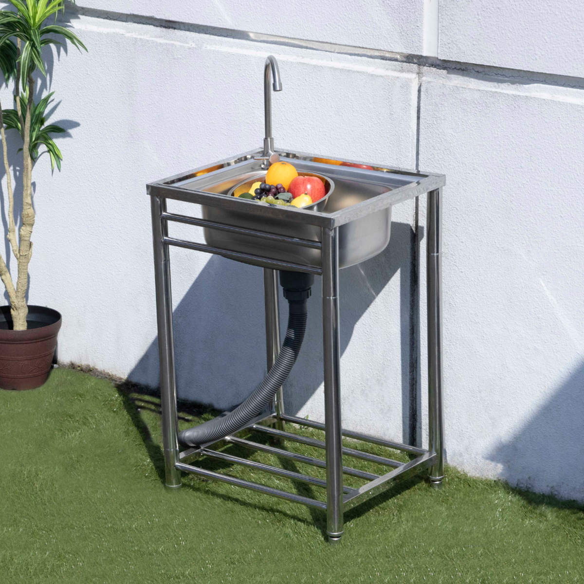 流し台 幅54.5×奥行45×高さ80cm 蛇口付き ステンレス おそとキッチン ( ガーデンシンク 屋外 シンク アウトドアシンク ステンレス流し台 アウトドア ステンレス製 外 簡易キッチン 流し 屋外用流し台 ゴミ受け 排水キャップ付き )