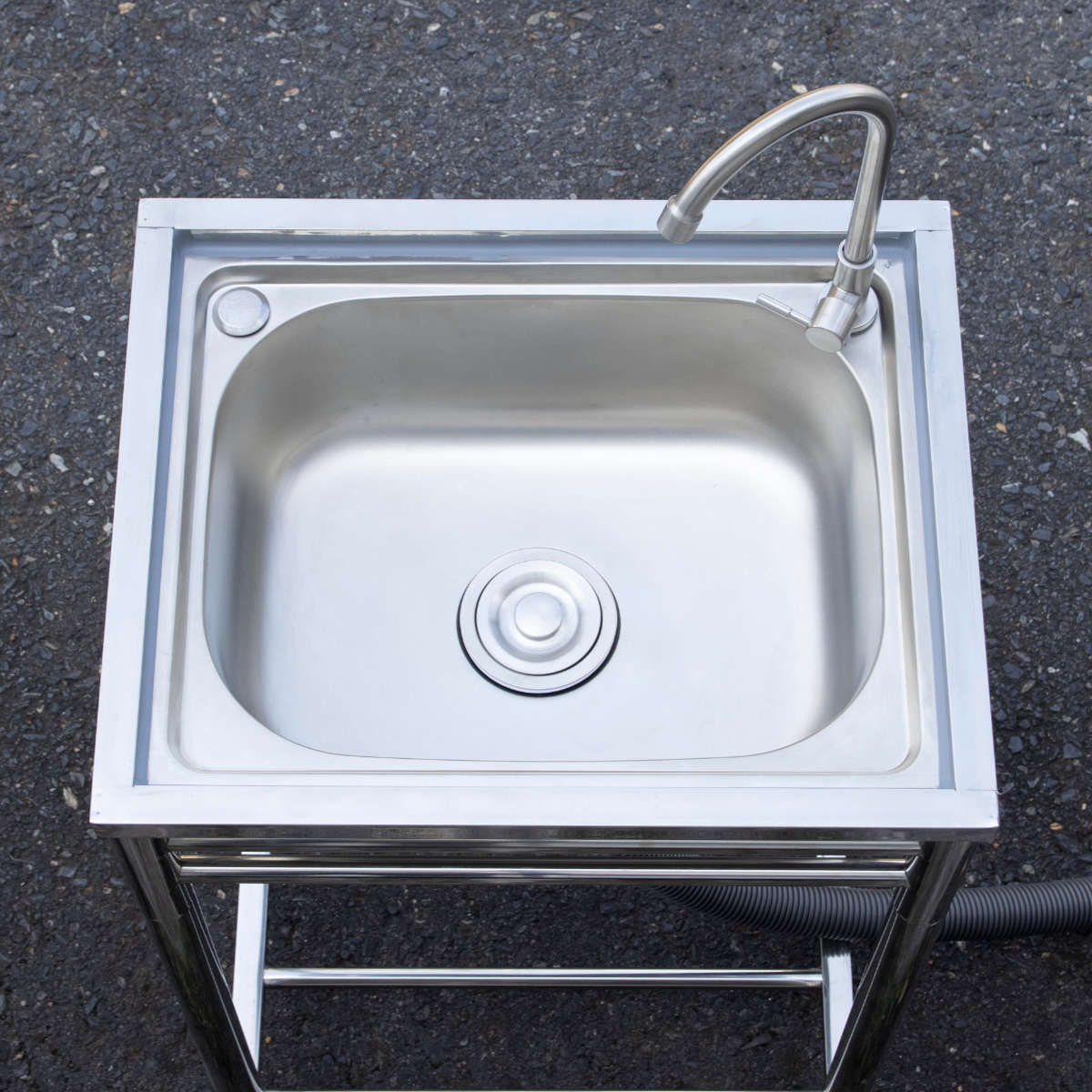 流し台 幅64.5×奥行50×高さ80cm 蛇口付き ステンレス おそとキッチン ( ガーデンシンク 屋外 シンク アウトドアシンク ステンレス流し台 アウトドア ステンレス製 外 簡易キッチン 流し 屋外用流し台 ゴミ受け 排水キャップ付き )