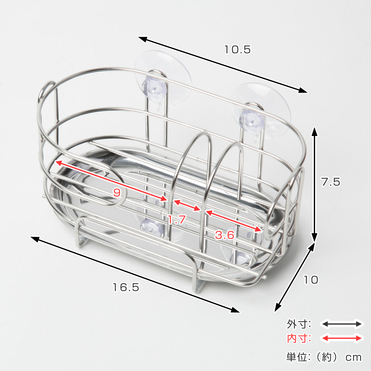 | サイズ | 約 幅16.5×奥行10×高さ7.5(cm) 吸着盤含まず |