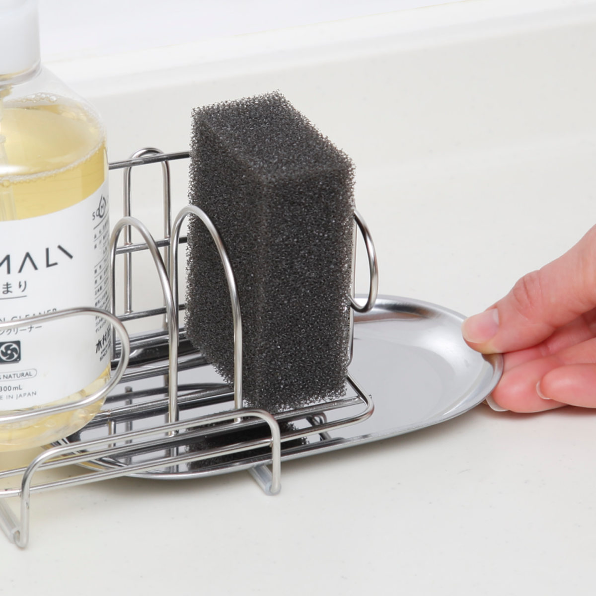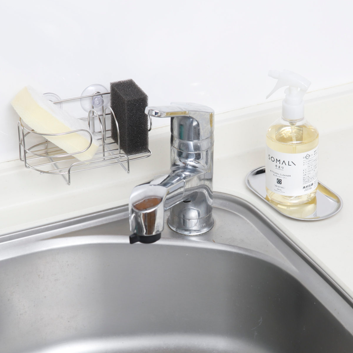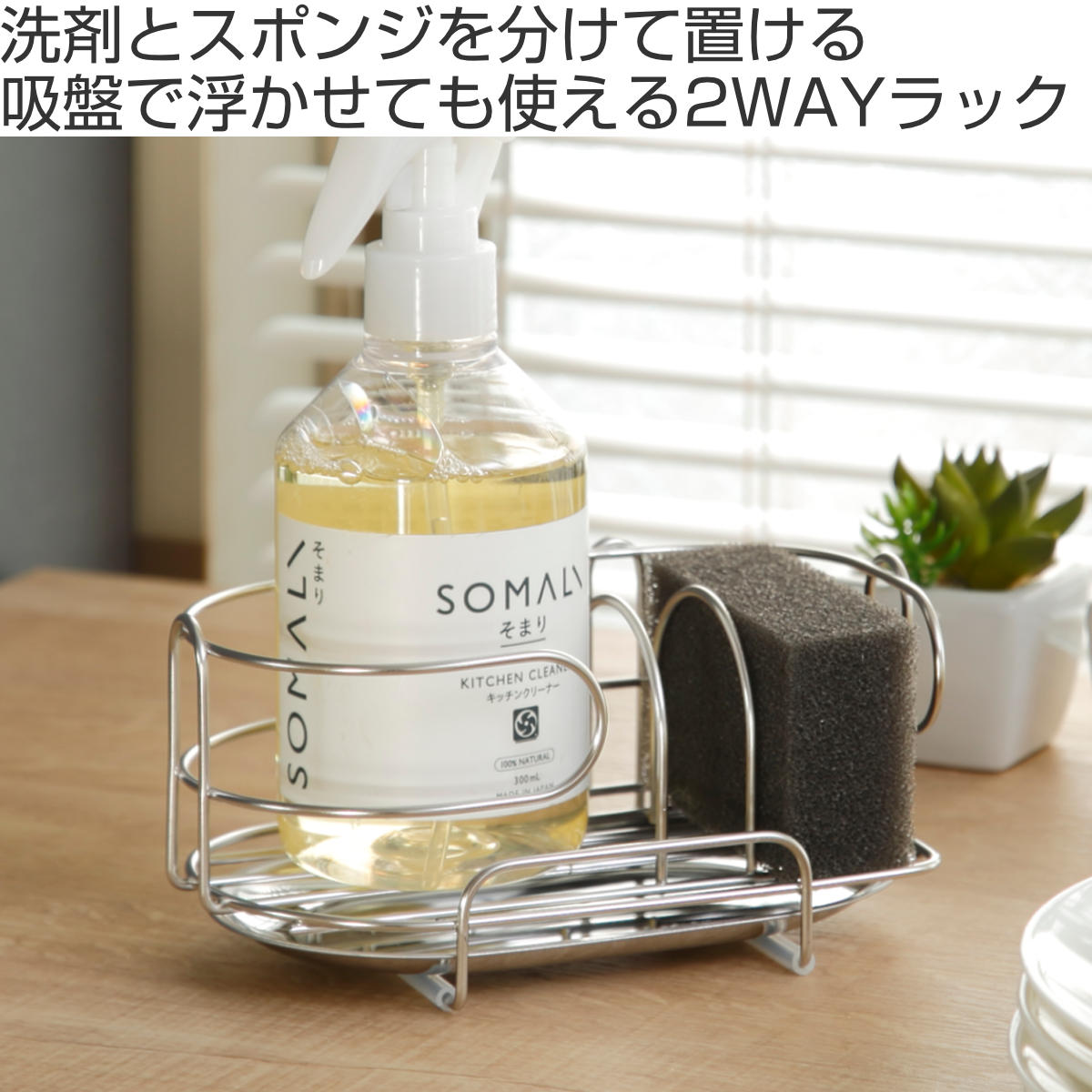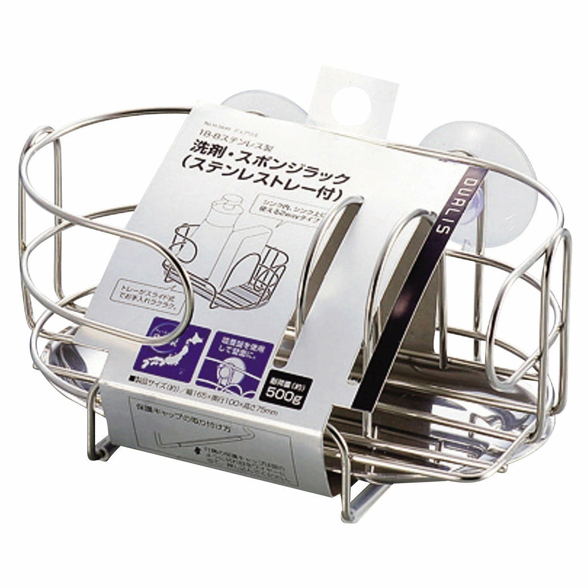 スポンジラック デュアリス 18-8ステンレス製 洗剤スポンジラック ステンレストレー付き 日本製 ( ステンレス スポンジ入れ スポンジホルダー スポンジ置き 吸盤 スポンジ収納 水切り スポンジ 入れ 置き 洗剤立て 洗剤置き )