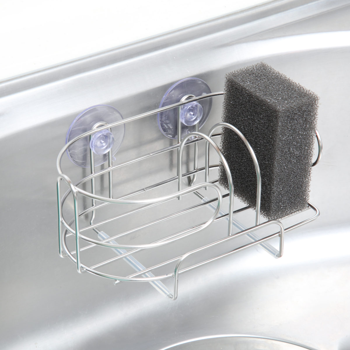 ほとんどのシンクにくっつけられる吸盤式で設置が簡単です。シンクの他にもタイルやガラス、鏡面、冷蔵庫など幅広くお使いいただけます。
