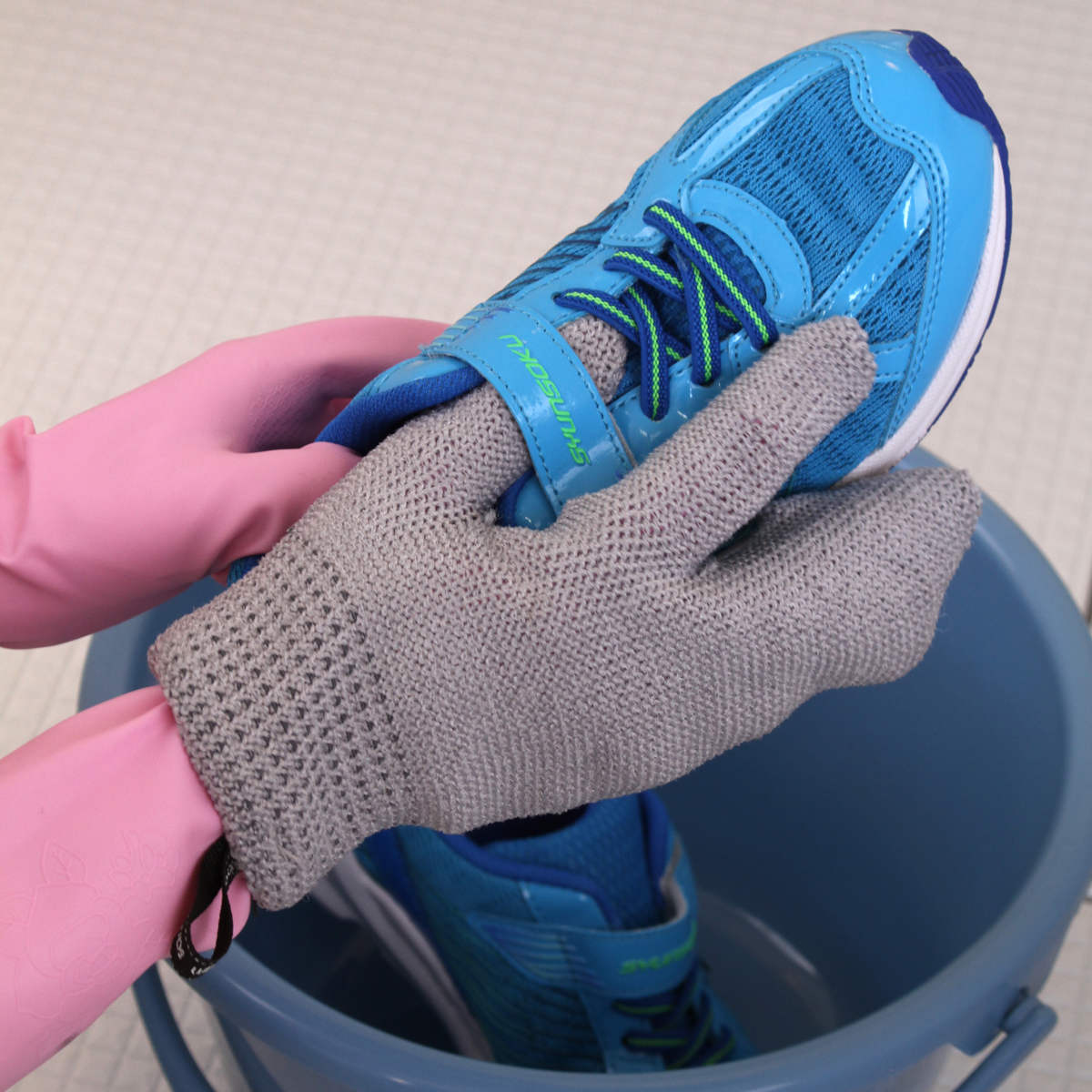 お子様の上履きやスニーカー洗いにもお使いいただけます。靴裏のでこぼこに入り込んだ汚れも、指先でこすって落とせます。