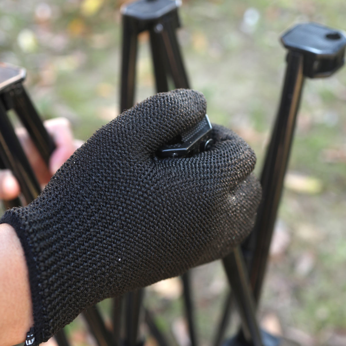 テントを固定するペグや、イスやテーブルの脚に付いた土を落とすのにも便利に使えます。手袋たわしがあれば、レジャーを楽しんだ後の片付けが楽ちんです。