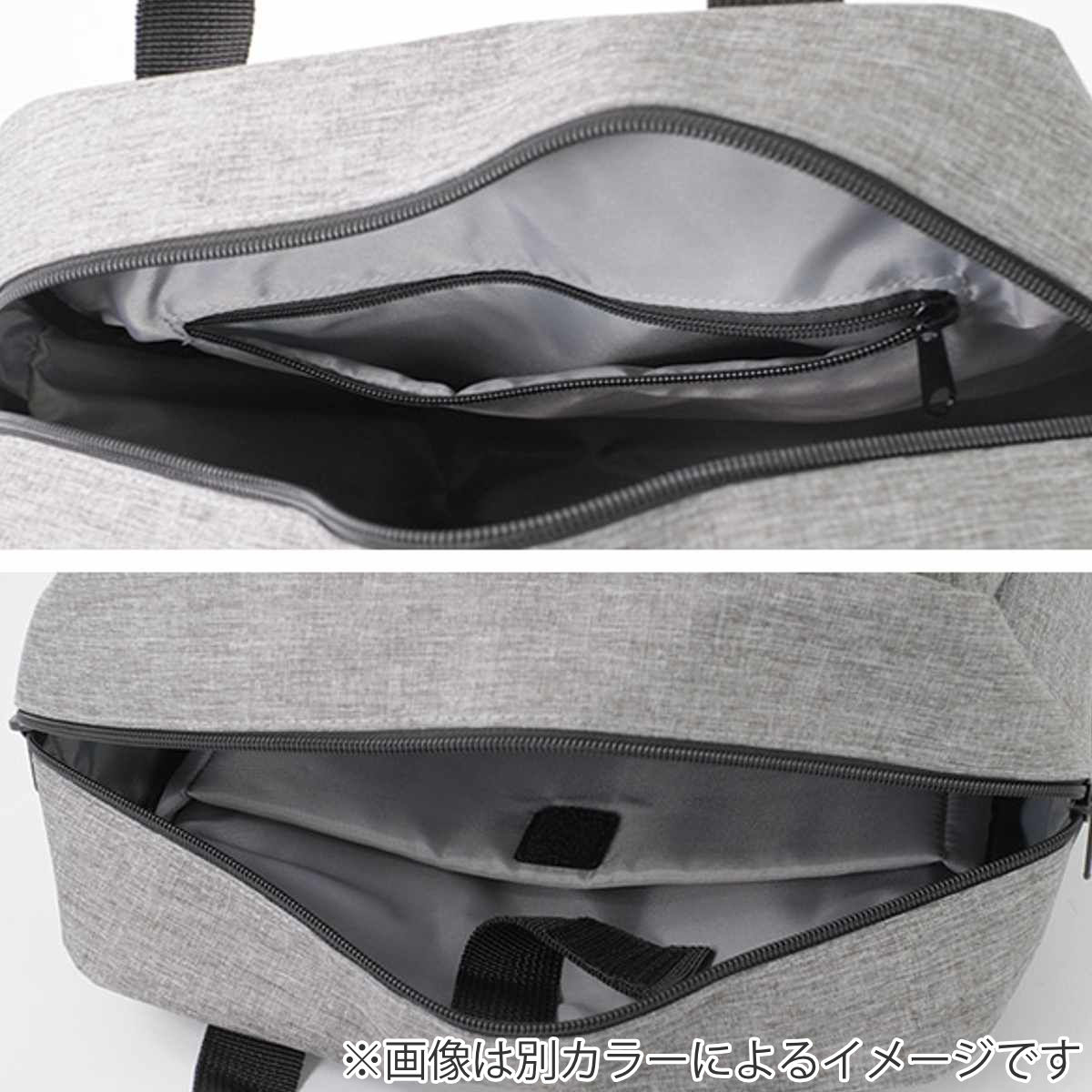 ボタンで束ねられる持ち手開口部はダブルジッパーを採用しています。しっかりと大きく開いて荷物の出し入れがスムーズにできます。