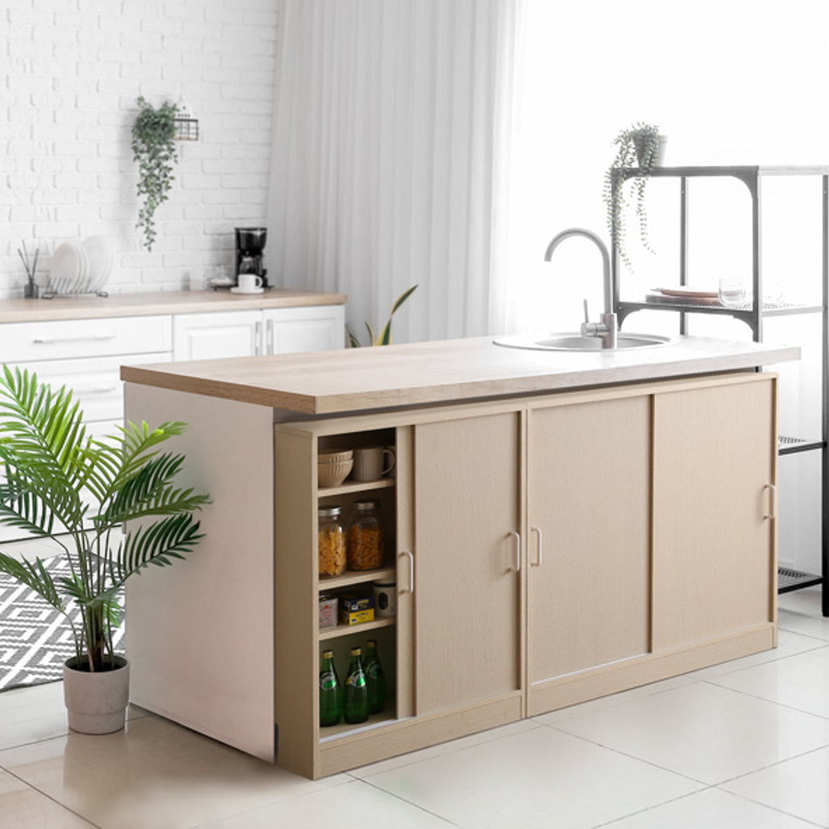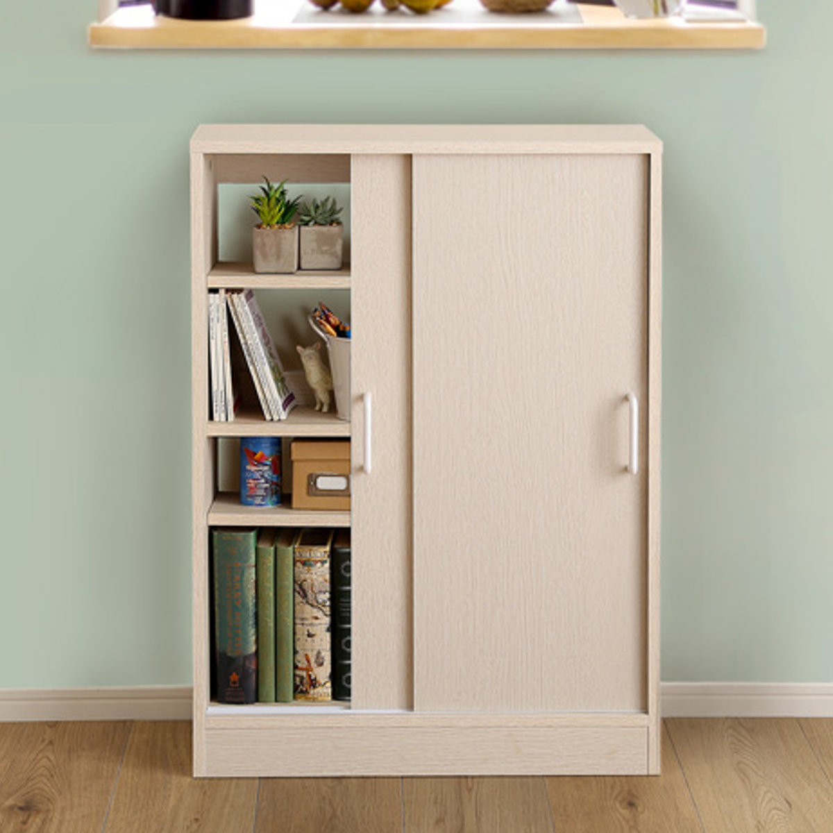 奥行き浅めの設計は、物が見やすく取り出しやすいのがポイントです。食器や雑貨などをたっぷり収納できます。