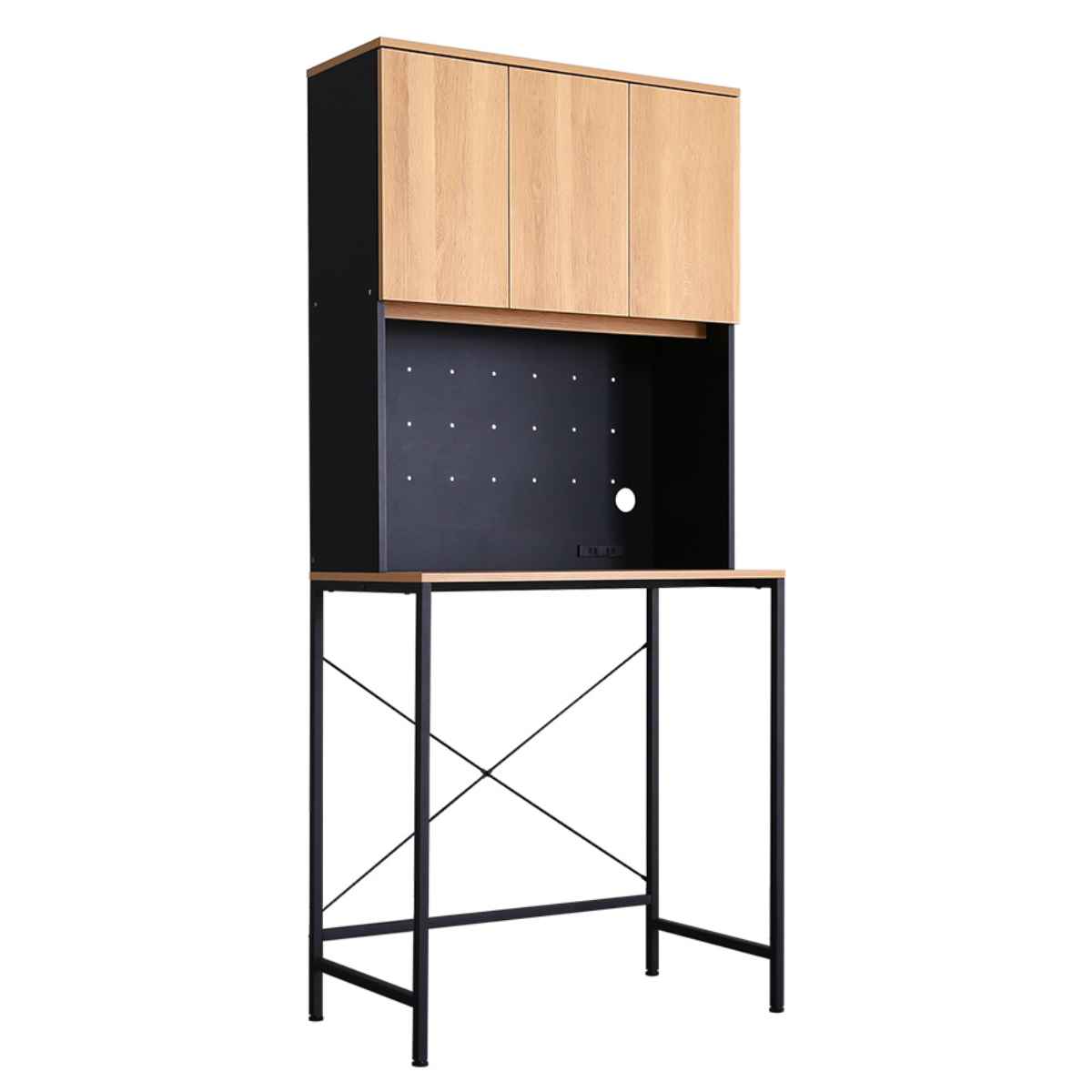 手が届きやすい高さ86.5cmのオープン収納は、天板が約15.5cm前に出ておりスペースにゆとりをもたせているため、お料理中の調理台としてもお使いいただけます。幅約80cmと大型レンジも置ける広さで使い勝手の良いサイズ感です。