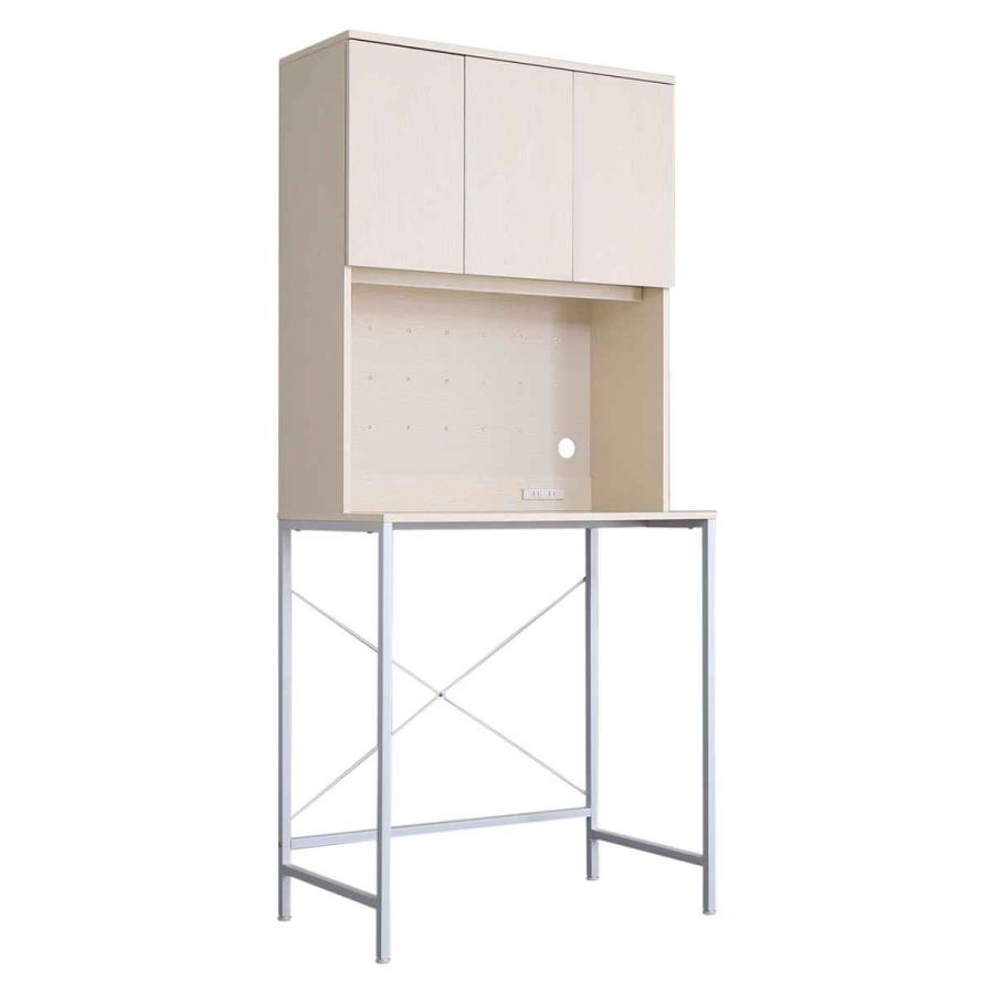 手が届きやすい高さ86.5cmのオープン収納付きです。天板は約15.5cm前に出ておりスペースにゆとりをもたせているため、お料理中の調理台としてもお使いいただけます。幅約80cmと大型レンジも置ける広さで使い勝手の良いサイズ感です。