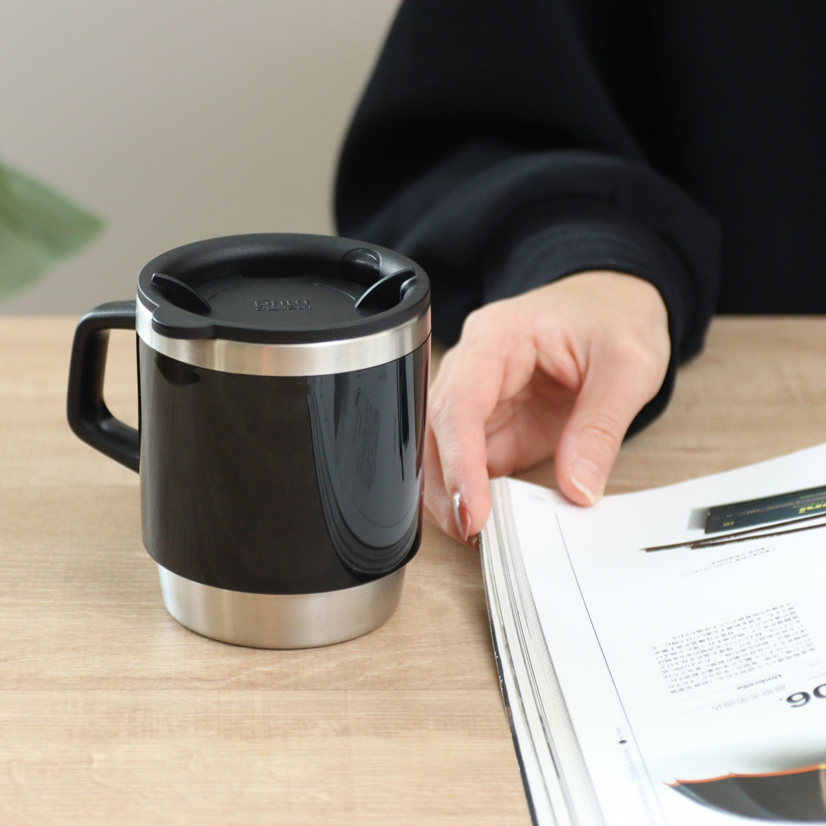 ステンレスの真空二重構造で美味しい飲み頃の温度をキープします。ゆっくり飲みたいリラックスタイムや作業に集中したいデスクワークの時にも使えて、一年中活躍します。