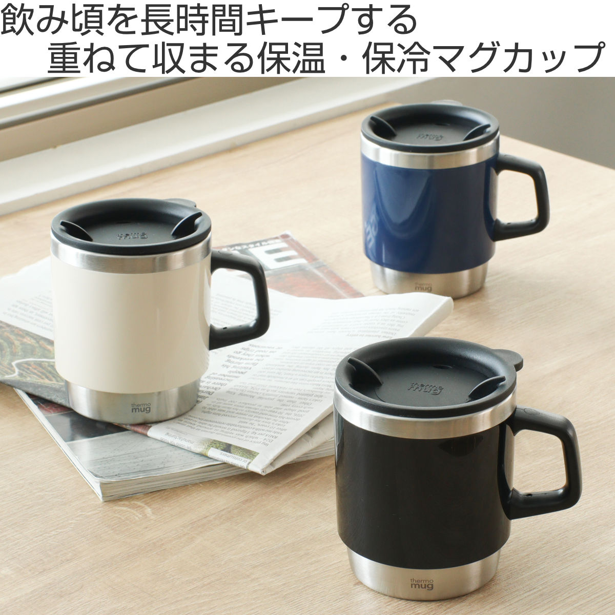 マグカップ フタ付き 300ml thermo mug スタッキングマグ ステンレス ( マグ カップ コップ 真空二重構造 保冷 保温 スタッキング ステンレス製 コーヒー 紅茶 珈琲 おしゃれ ) 【アイボリー】