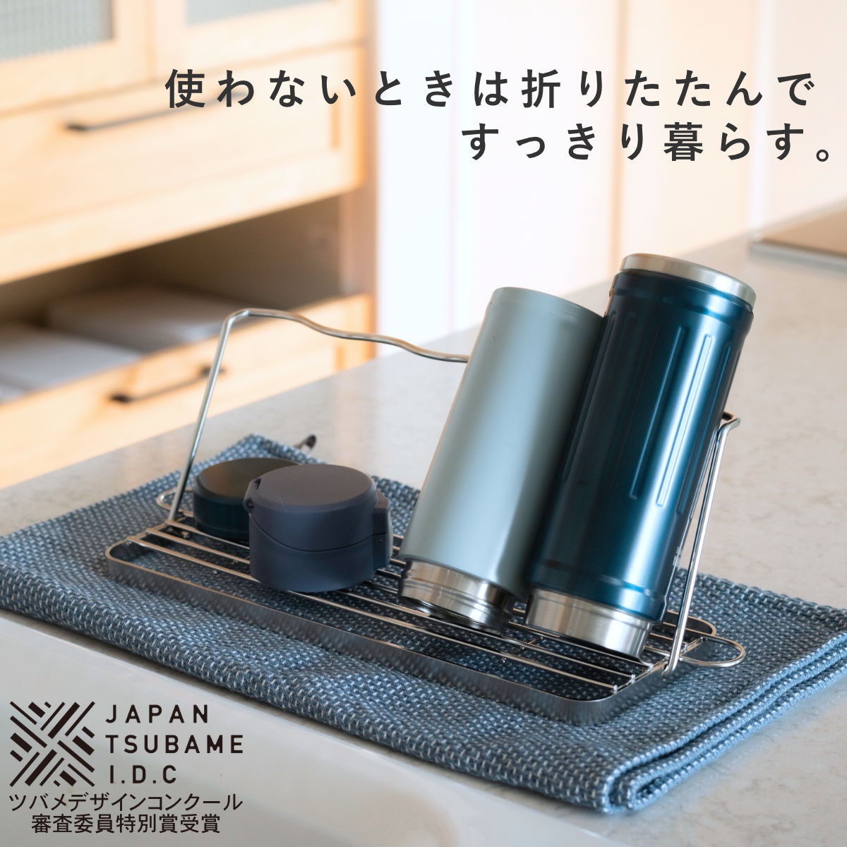ビーワーススタイル すっきり暮らすジャグボトルスタンド ( 水切りラック 日本製 ステンレス 水切りかご 水切りカゴ 水切り シンク上 折りたたみ 食洗機対応 水筒 ラック スタンド コンパクト 洗い物 乾燥 )