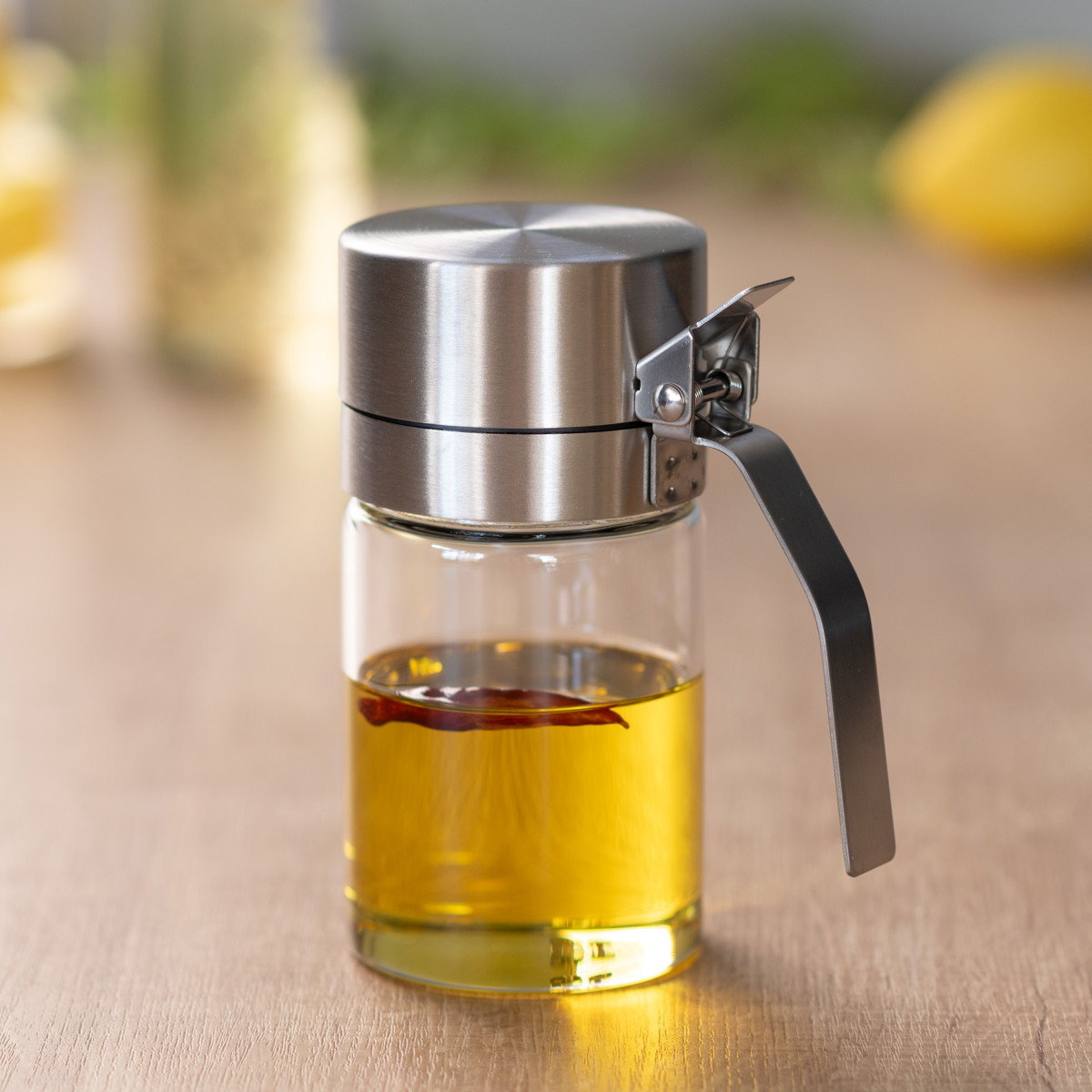 酸化が大敵なオイルやヴィネガーを美味しいまま保存できます。ハンドルは長くて持ちやすく、ワンタッチで開くリッドで調理中も片手で簡単に注げます。
