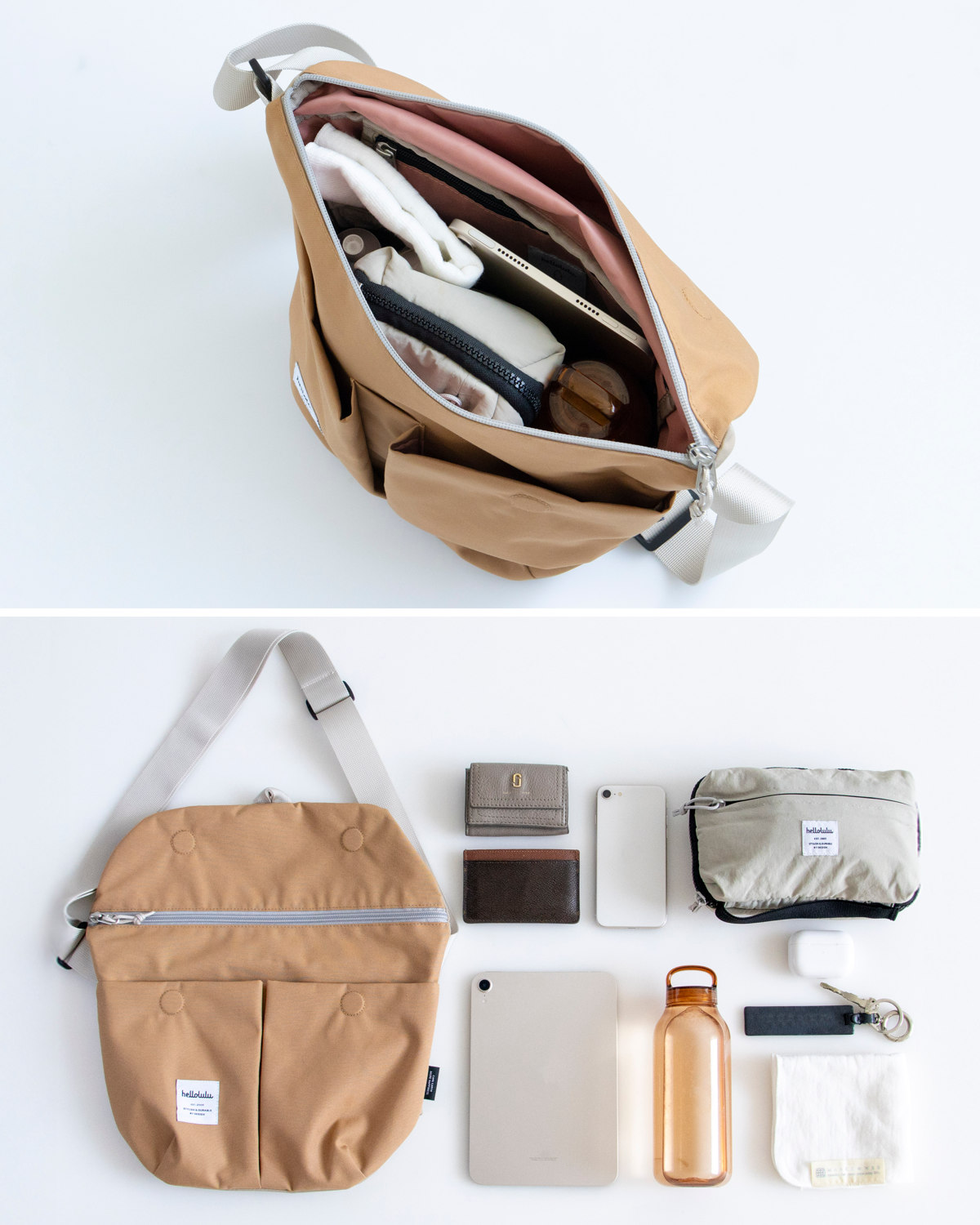 【25年SS】 ショルダーバッグ hellolulu カセン KASEN ( ハロルル バッグ レディース メンズ ミニショルダー クロスボディ 軽い 撥水 斜め掛け クロスバッグ ポシェット かぶせ ファスナー 内ポケット マグネット おしゃれ ) 【GentleGray×SoapPurple】