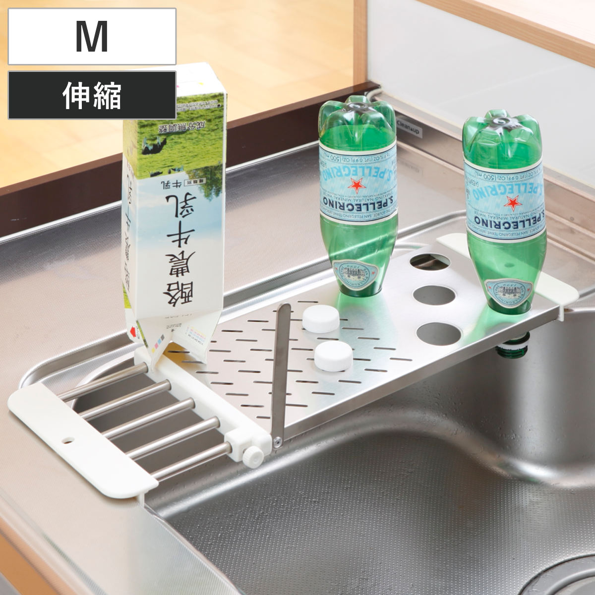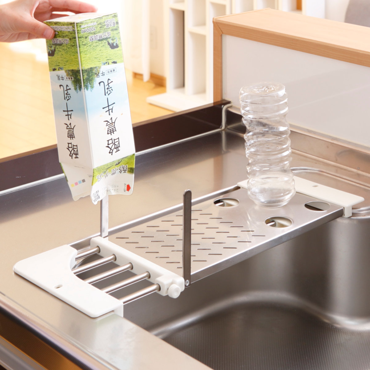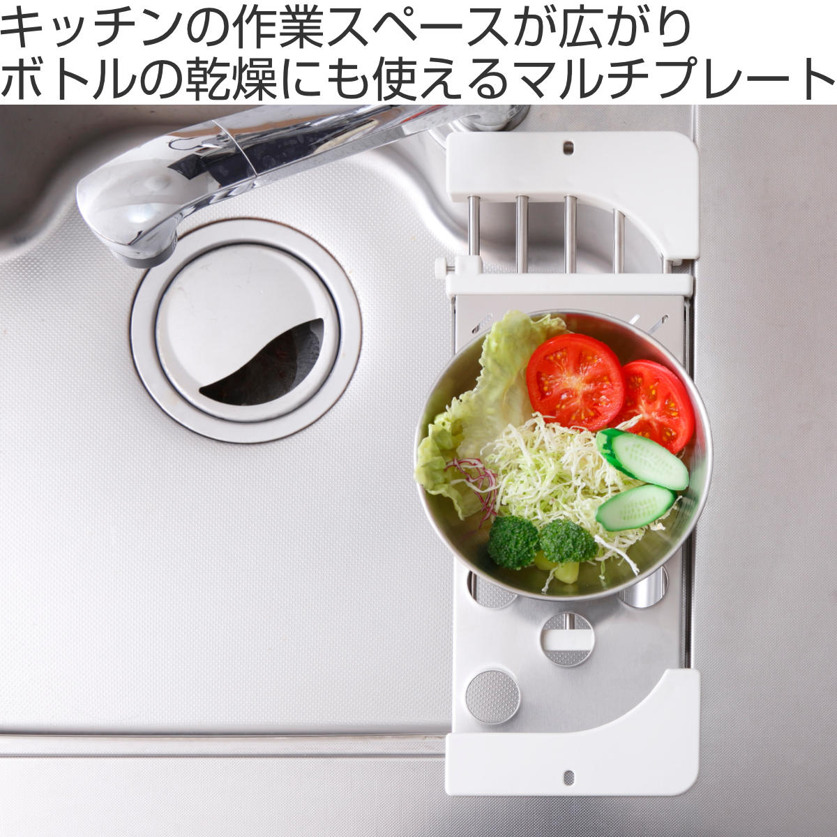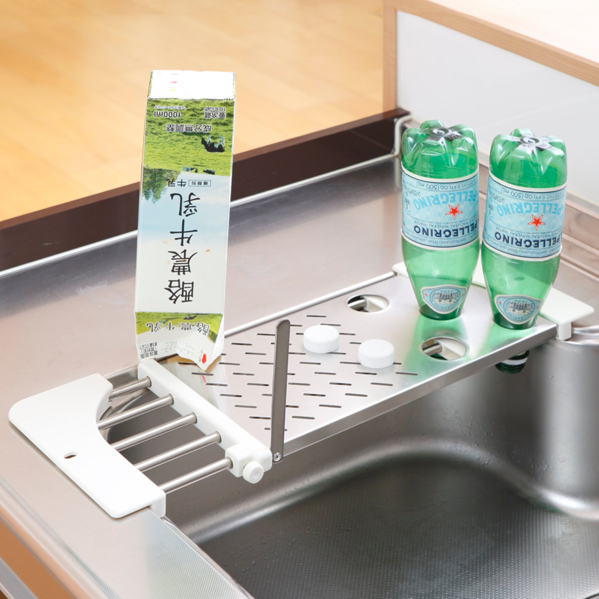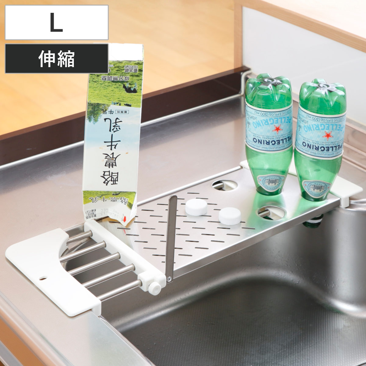 水切りトレー アットアクア ステンレス製 マルチパイプ棚プレート L ( ステンレス シンク上 伸縮 シンク横 シンク 渡せる 水切りプレート ボトルスタンド 作業台 洗い物 食器 洗い ペットボトル 牛乳パック 哺乳瓶 乾かす 穴 )