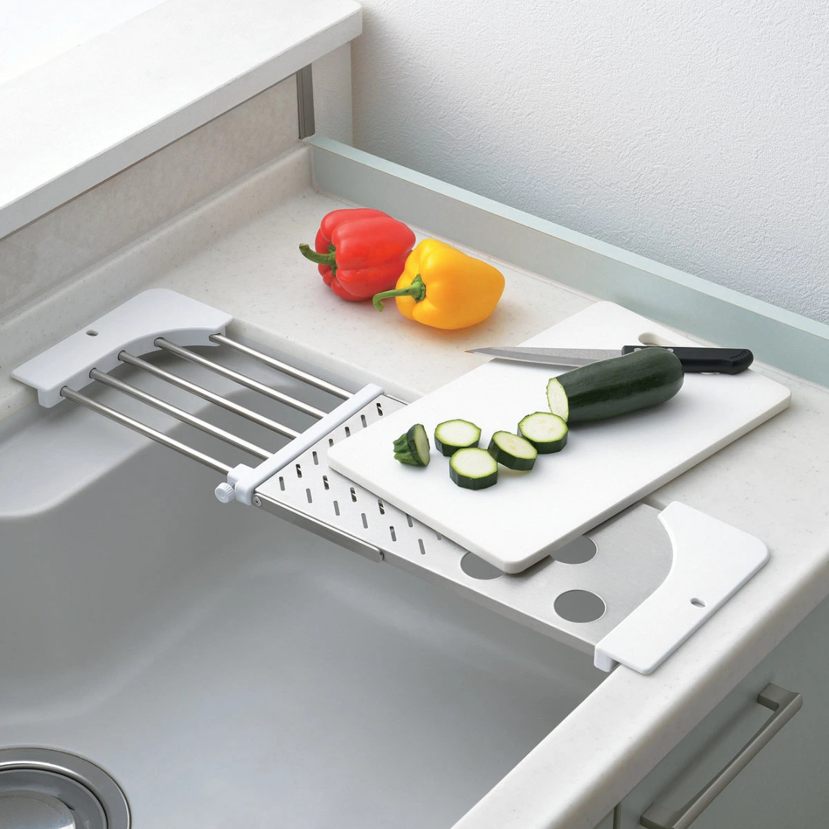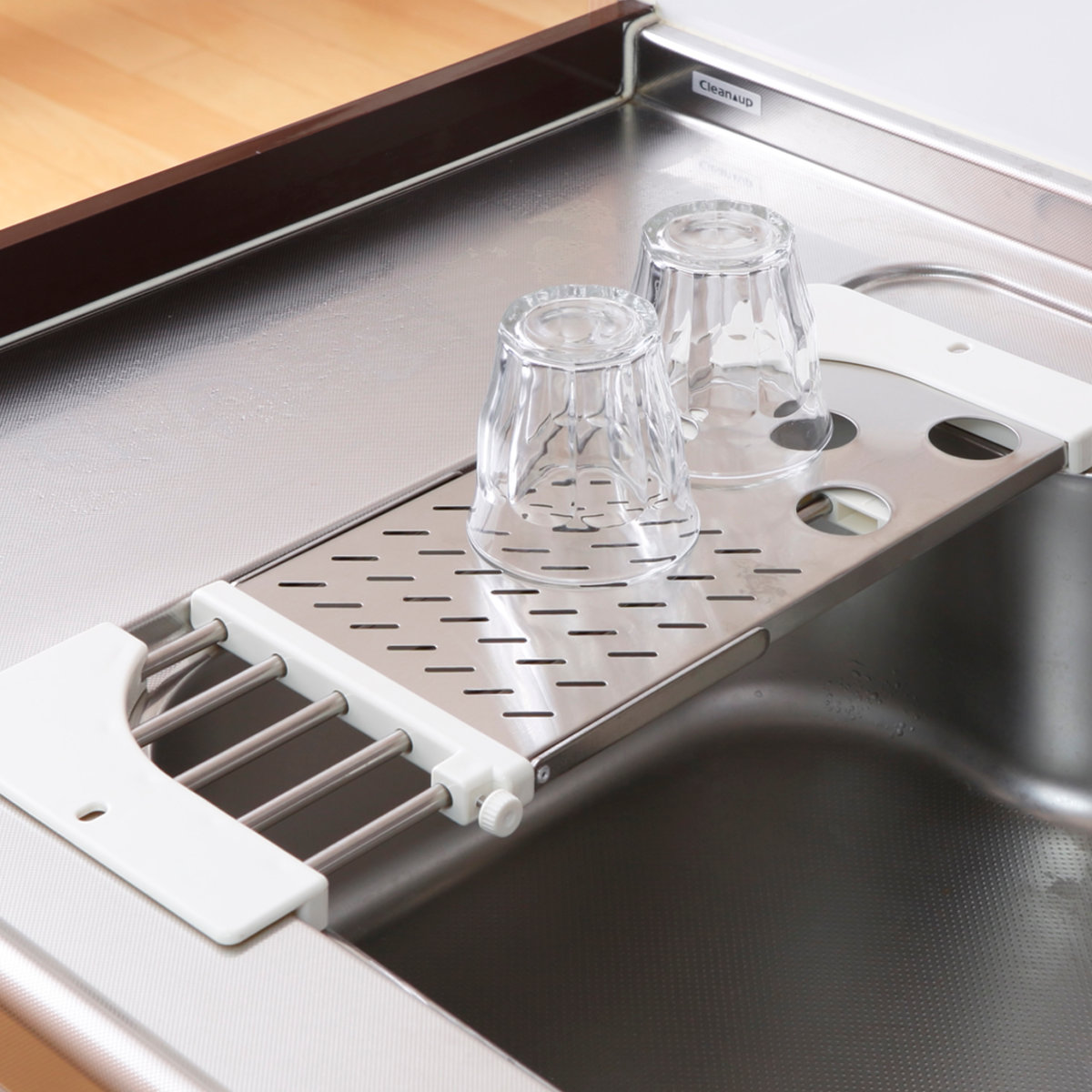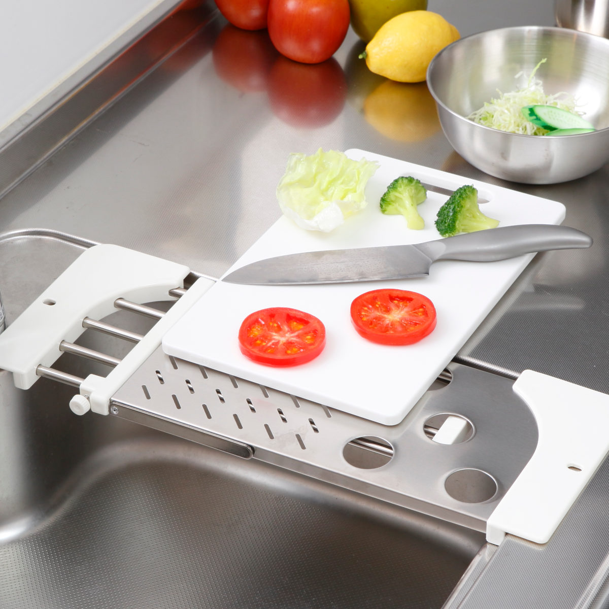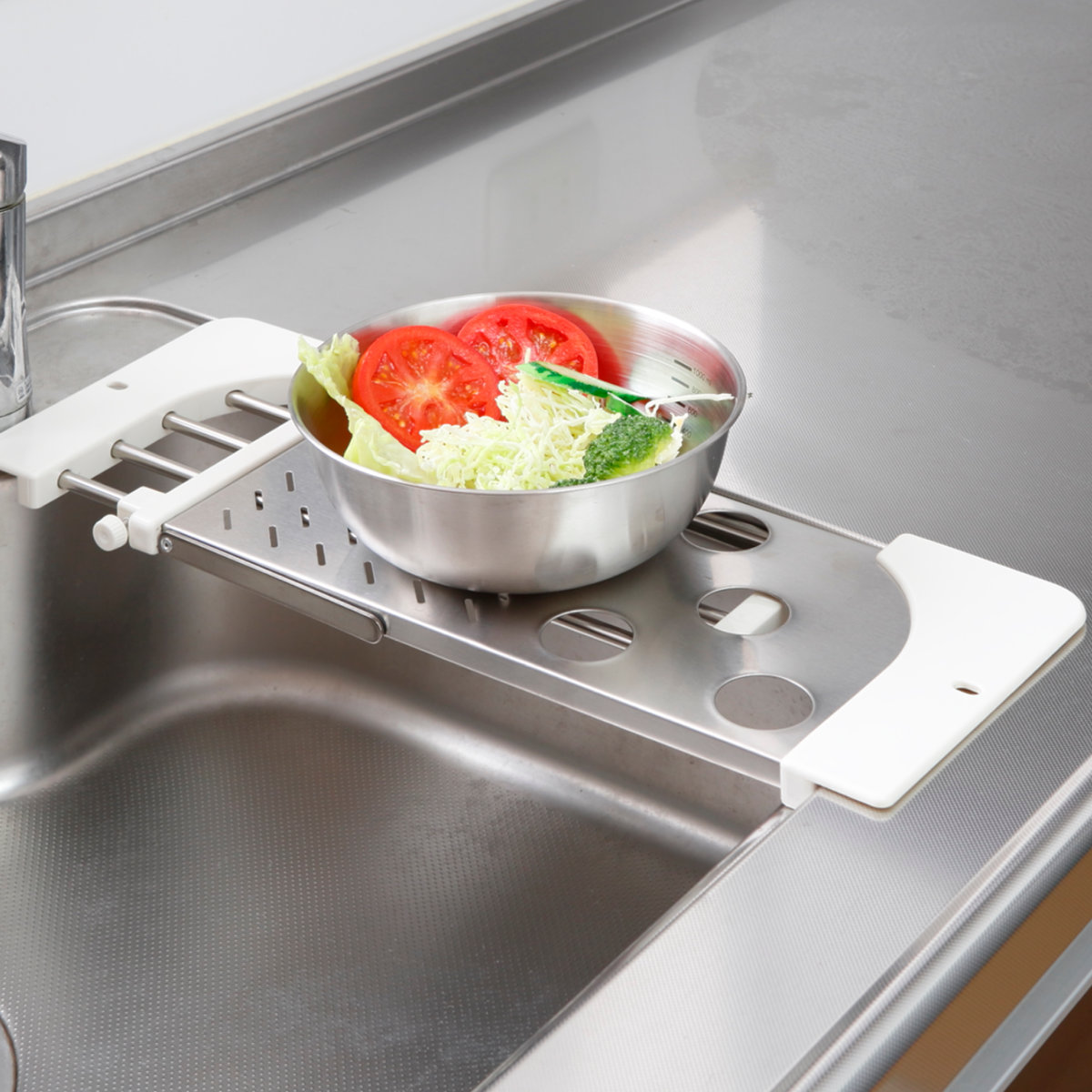 シンクに渡して調理スペースを広げられるパイプ棚プレートです。ちょっとした水切りとしてや、作業スペースとしてなど狭いキッチンでもシンク内スペースを有効活用できます。