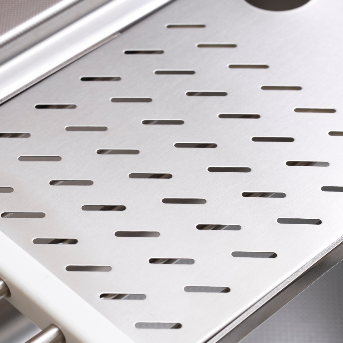 ステンレス製のプレートタイプなので、まな板をおいても安定して作業ができます。