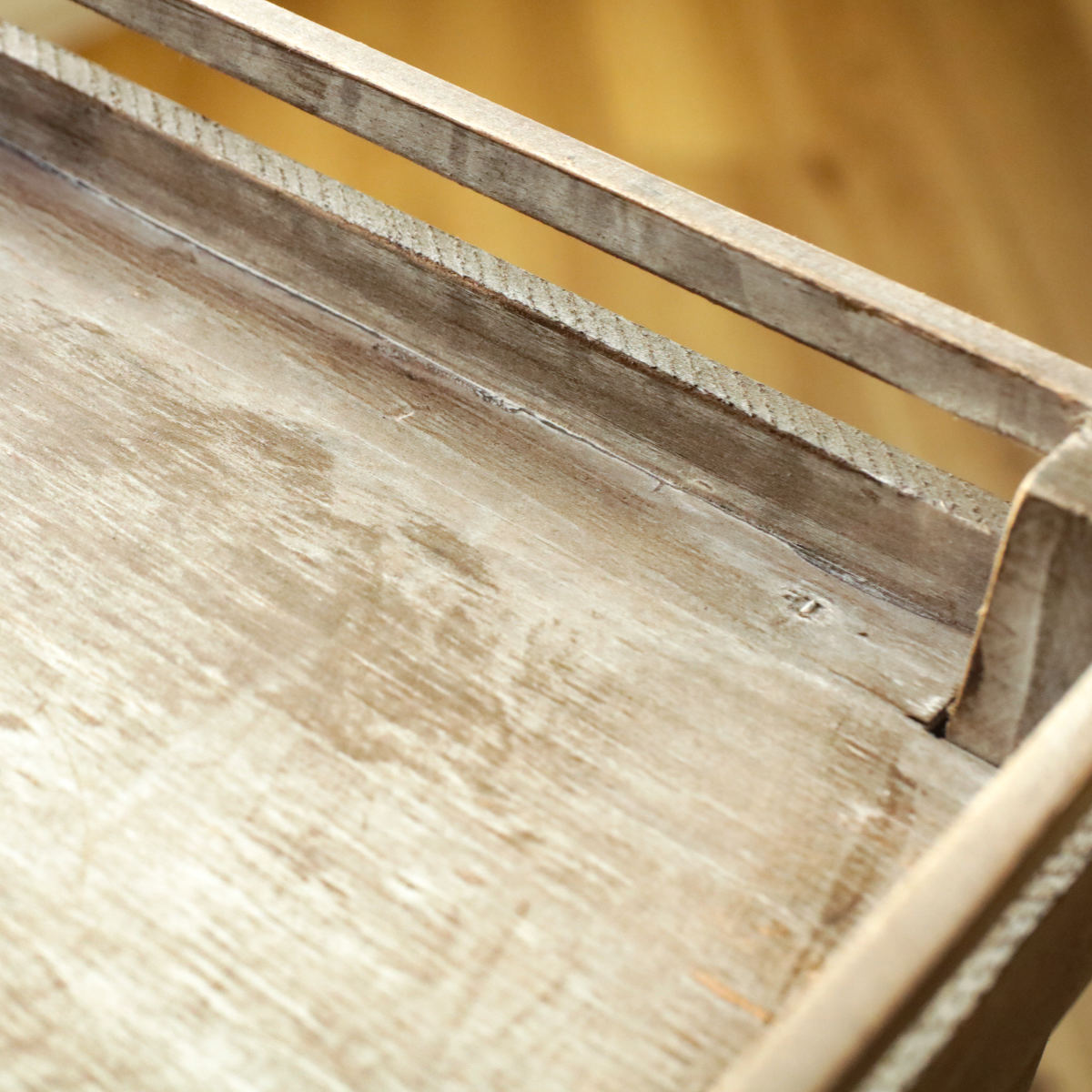 小さな鉢を並べてディスプレイしたり、植物をおしゃれに飾れるプランラースタンドです。少しくすんだ色合いの木材を使用したアンティークな風合いが良い雰囲気を演出します。