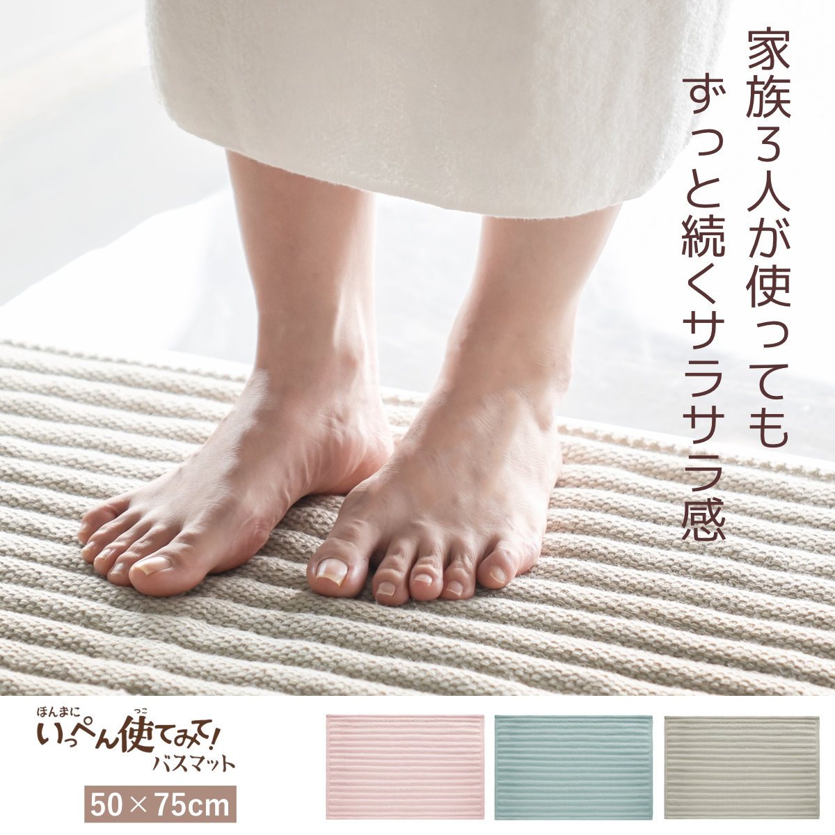 いっぺん使てみてバスマット 50×75cm ( お風呂マット マット 吸水 抗菌 防臭 すべり止め 洗濯OK 50×75 足ふきマット お風呂 バスグッズ 浴室 脱衣所 足拭き シェルピンク ペールブルー サンドベージュ 無地 ) 【サンドベージュ】
