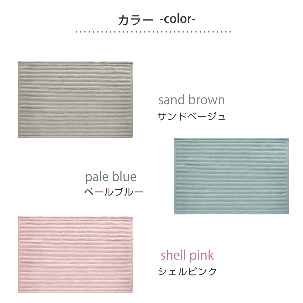 | 種類 | シェルピンク、ペールブルー、サンドベージュ |