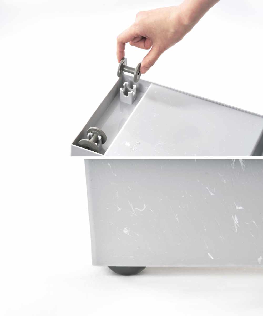 | 材質 | 本体・ふた・キャスター:ポリプロピレン 袋止め:鋼(三価ユニクロメッキ) 枠:ABS樹脂 |
