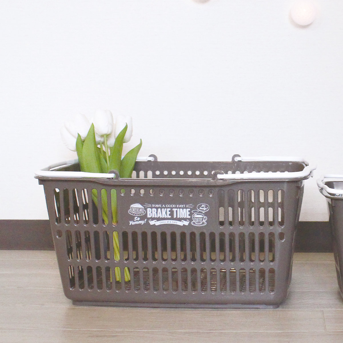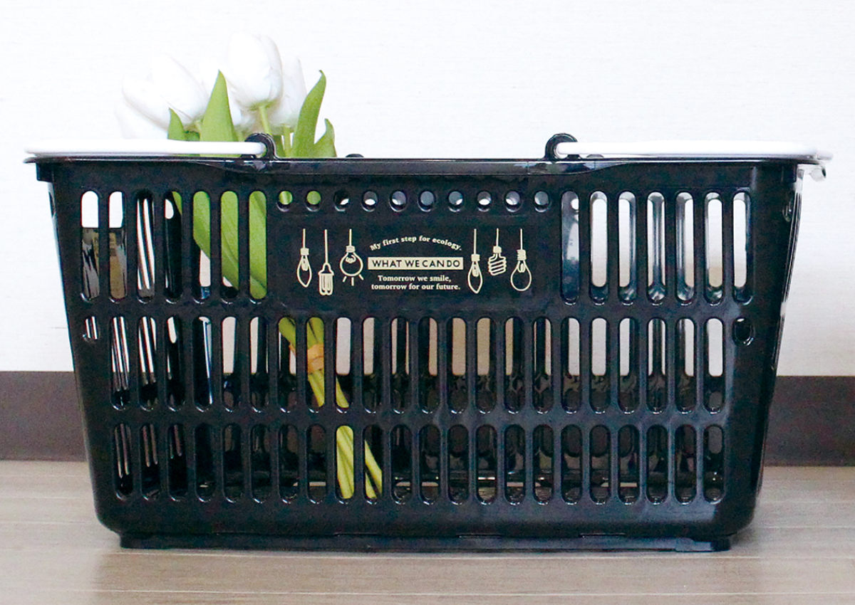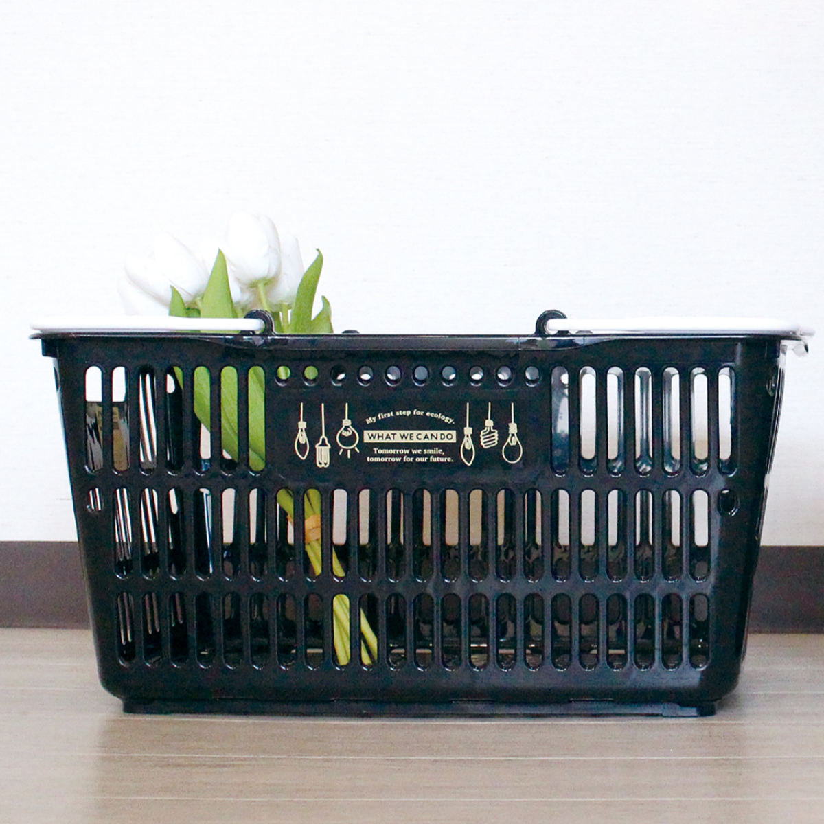 スーパーのカートにそのまま乗せることができる、使い勝手の良いお買いものバスケットです。レジで商品をバスケットに入れてもらえば、レジ袋削減と時間の短縮になります。