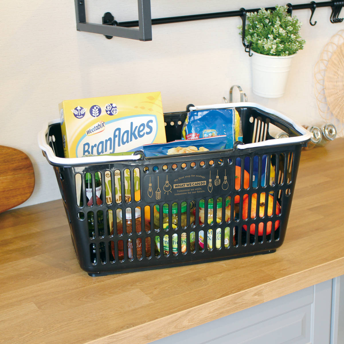 買い物カゴの用途としてはもちろん、食品ストック、おもちゃの収納、洗濯カゴ、アウトドアやレジャーなどのお出掛けの際にも活躍します。