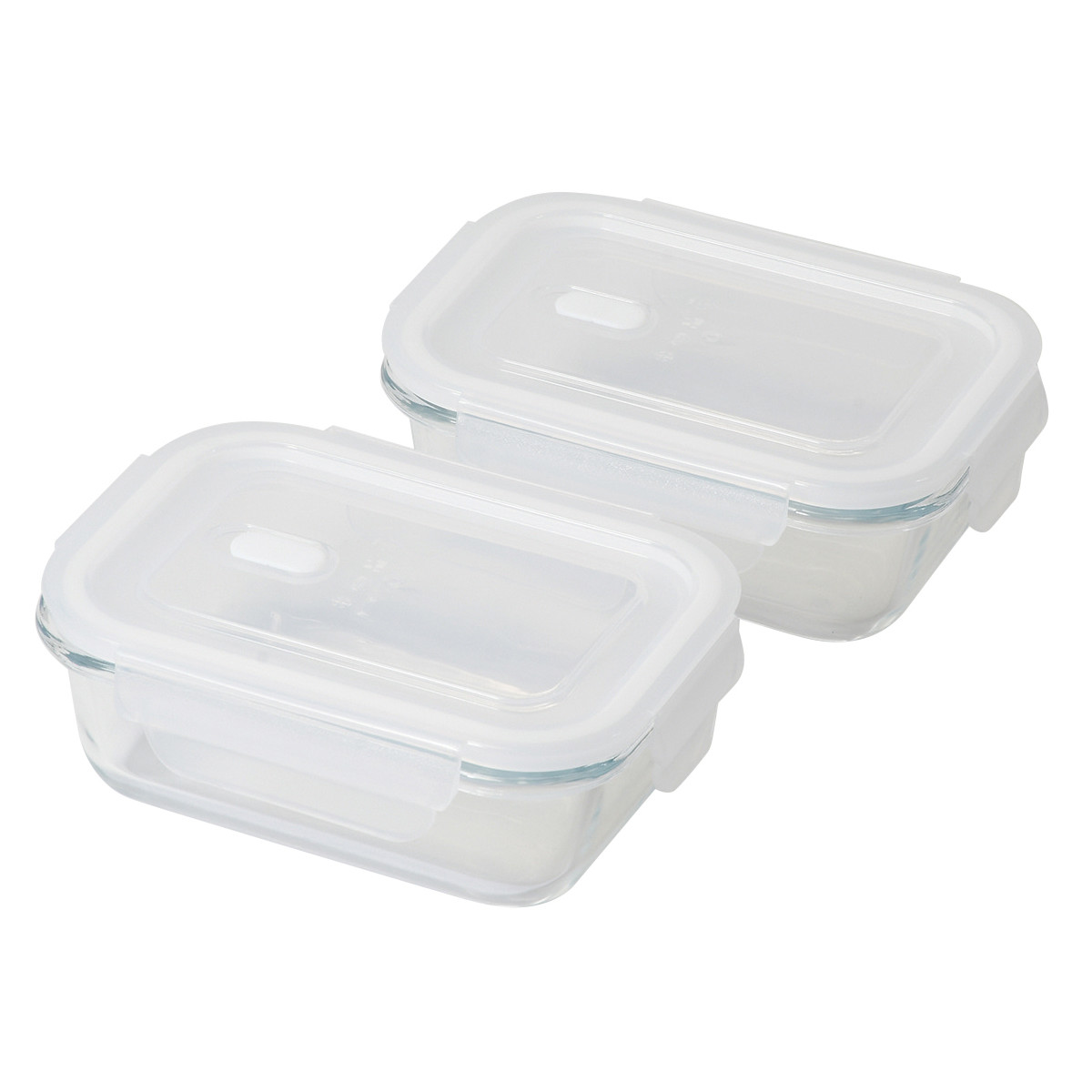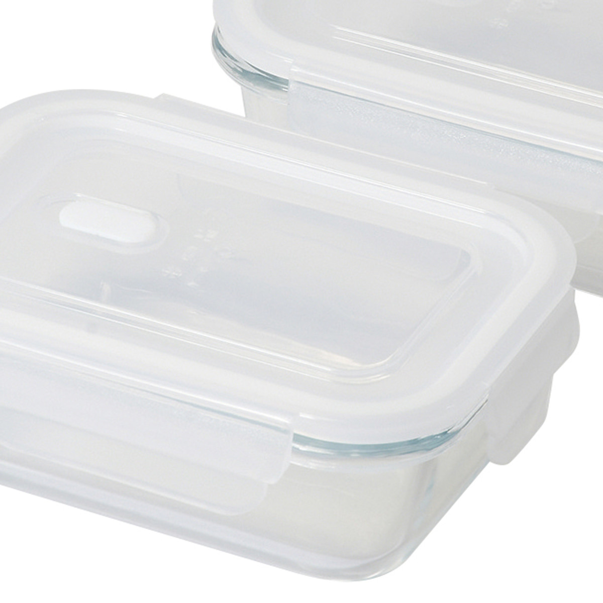 保存容器 キッチンメイト ガラス 角型 380ml 2個組 ( 容器 電子レンジ対応 食洗機対応 オーブン対応 冷凍可能 密閉 食品保存 作り置き ストッカー 中身が見える クリア 4点ロック 長方形 蒸気弁 冷蔵庫 )