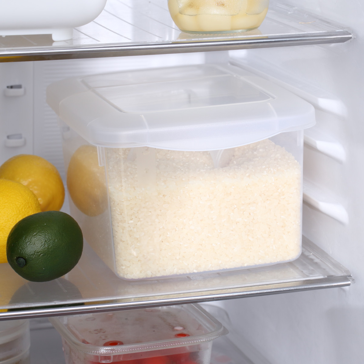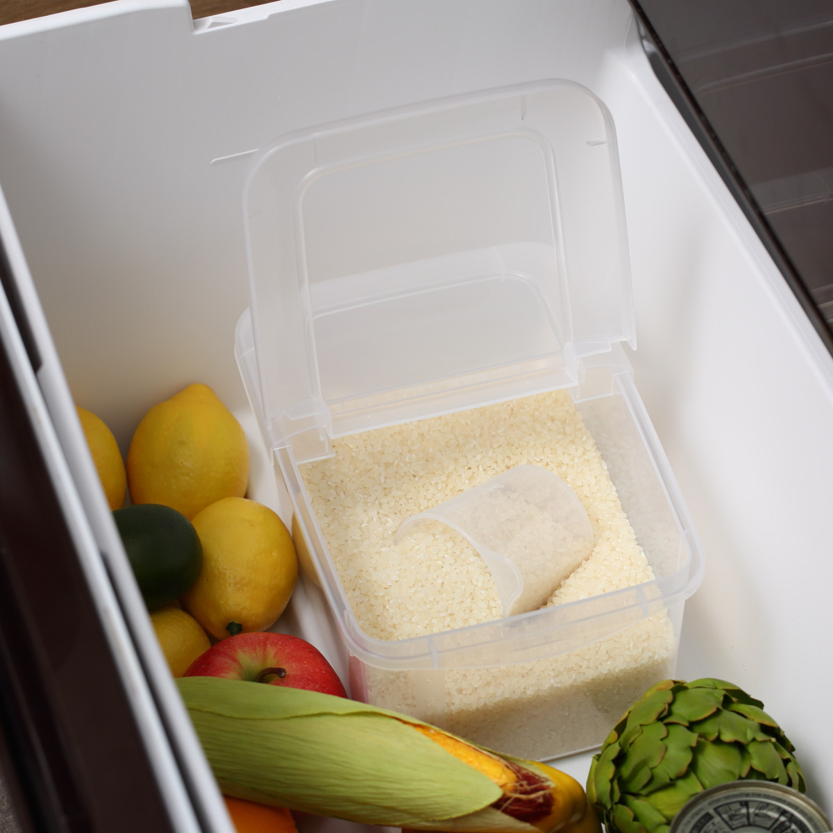 冷蔵庫内で使用できるコンパクトサイズの米びつです。高さ約13cmと浅型なので、冷蔵庫の棚や野菜室などに収納できます。お米を冷蔵庫で保存することでカビや害虫の発生を防ぎ、鮮度を保っておいしく保存することができます。